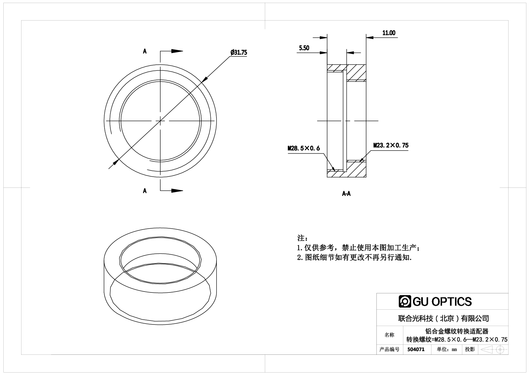 所有螺纹转换适配器都采用精密CNC数控加工,具有极高的尺寸精度以及良好的同心度和一致性,可使不同部件相互连接后的整体光路同轴。螺纹转换器还提供了和其他通用品牌的实验室光机部件之间的螺纹转换适配器(光桥系统和SM1、SM2、SM05匹配连接的螺纹转换接口等)。用户可以方便的将光桥系列产品应用到已经使用的光学架构系统中,从而节省从国内外采购同类产品的昂贵成本。