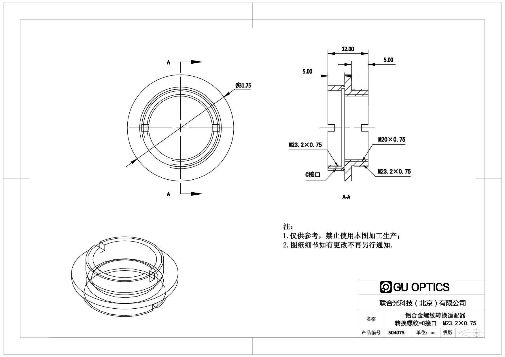 螺纹转换适配器 Ø31.75mm L=12mm