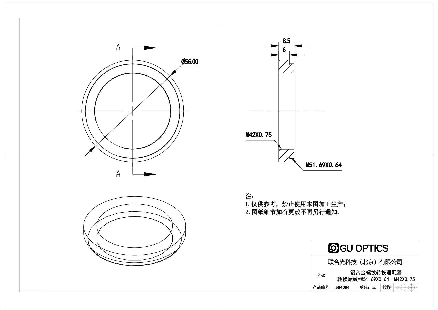螺纹转换适配器 Ø56mm L=8.5mm