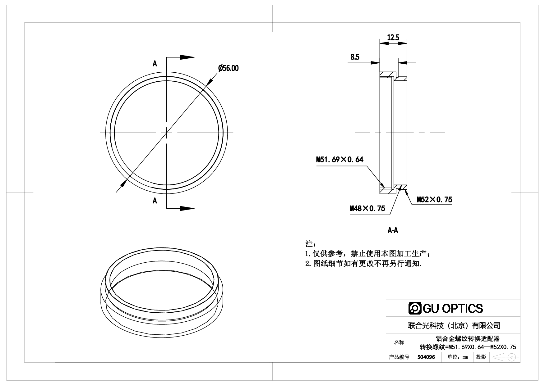 螺纹转换适配器 Ø56mm L=12.5mm