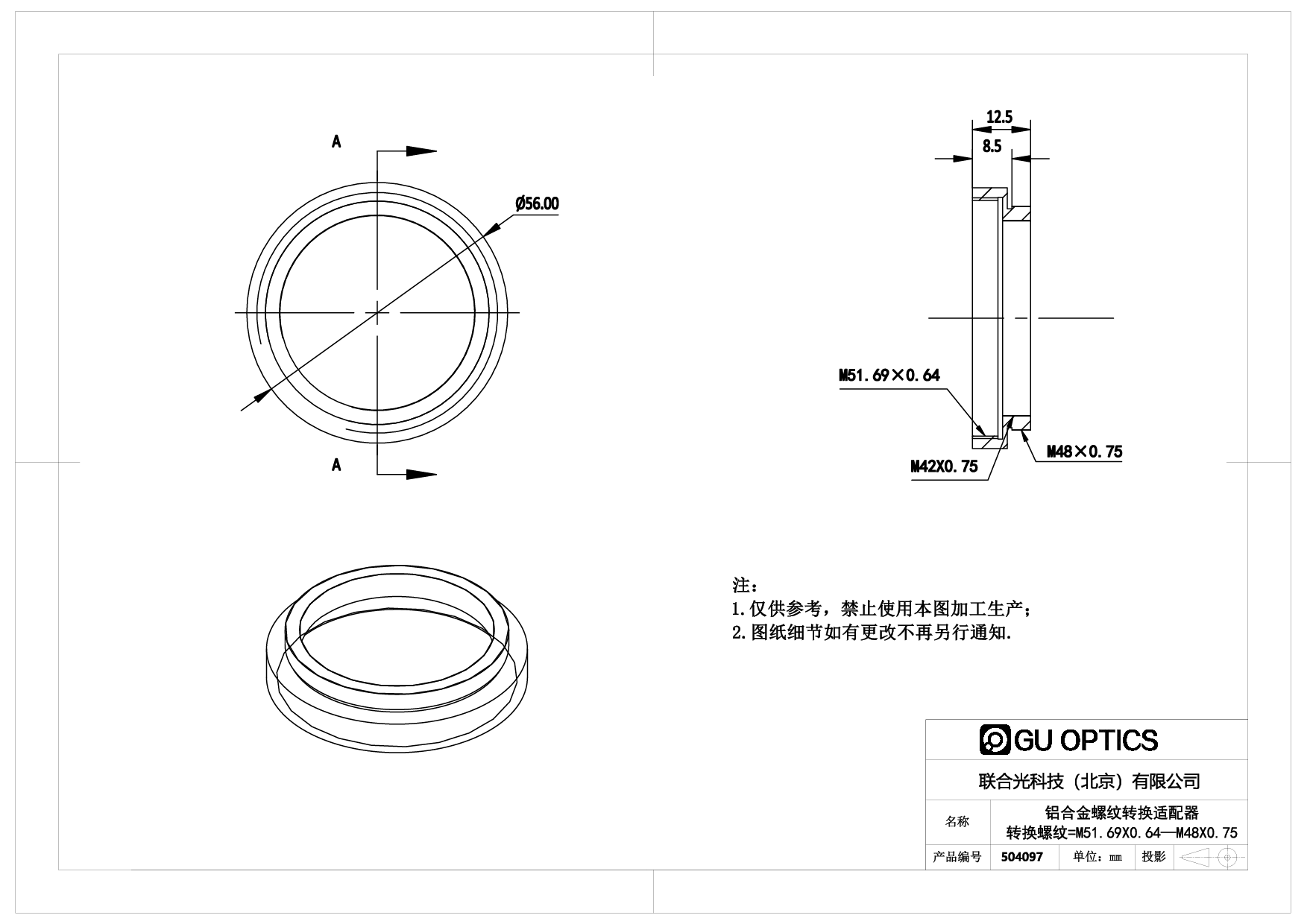 所有螺纹转换适配器都采用精密CNC数控加工,具有极高的尺寸精度以及良好的同心度和一致性,可使不同部件相互连接后的整体光路同轴。螺纹转换器还提供了和其他通用品牌的实验室光机部件之间的螺纹转换适配器(光桥系统和SM1、SM2、SM05匹配连接的螺纹转换接口等)。用户可以方便的将光桥系列产品应用到已经使用的光学架构系统中,从而节省从国内外采购同类产品的昂贵成本。