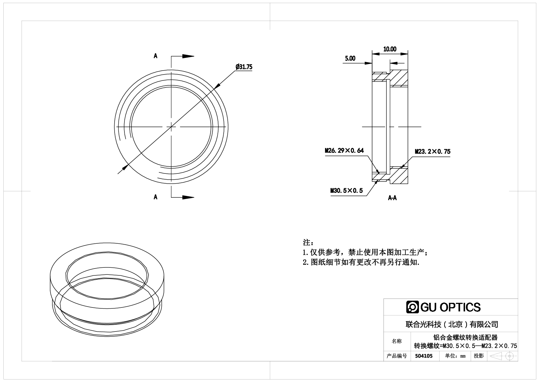 所有螺纹转换适配器都采用精密CNC数控加工,具有极高的尺寸精度以及良好的同心度和一致性,可使不同部件相互连接后的整体光路同轴。螺纹转换器还提供了和其他通用品牌的实验室光机部件之间的螺纹转换适配器(光桥系统和SM1、SM2、SM05匹配连接的螺纹转换接口等)。用户可以方便的将光桥系列产品应用到已经使用的光学架构系统中,从而节省从国内外采购同类产品的昂贵成本。
