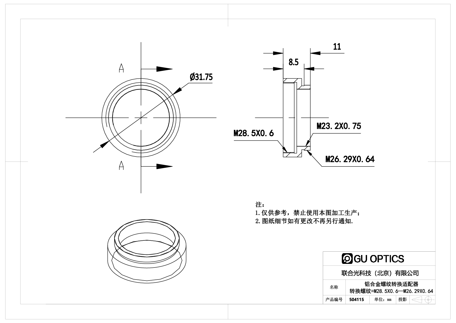 所有螺纹转换适配器都采用精密CNC数控加工,具有极高的尺寸精度以及良好的同心度和一致性,可使不同部件相互连接后的整体光路同轴。螺纹转换器还提供了和其他通用品牌的实验室光机部件之间的螺纹转换适配器(光桥系统和SM1、SM2、SM05匹配连接的螺纹转换接口等)。用户可以方便的将光桥系列产品应用到已经使用的光学架构系统中,从而节省从国内外采购同类产品的昂贵成本。