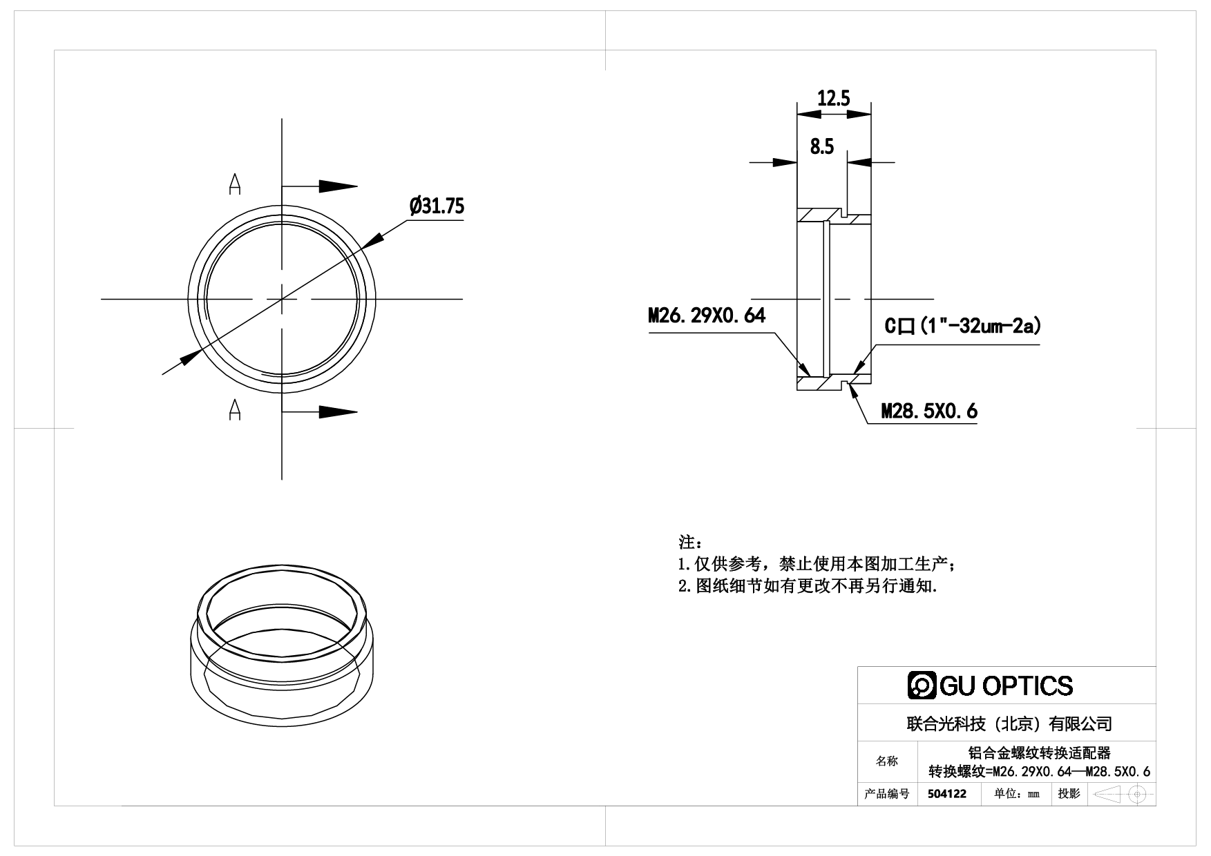 螺纹转换适配器 Ø31.75mm L=12.5mm