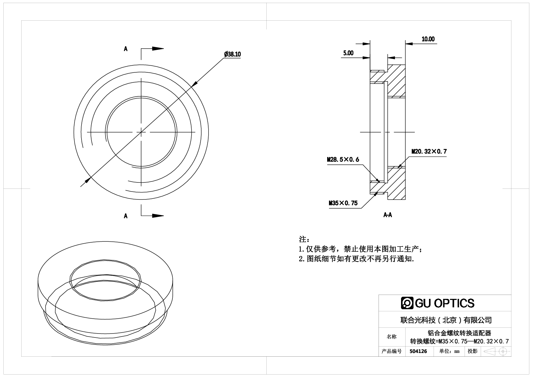 所有螺纹转换适配器都采用精密CNC数控加工,具有极高的尺寸精度以及良好的同心度和一致性,可使不同部件相互连接后的整体光路同轴。螺纹转换器还提供了和其他通用品牌的实验室光机部件之间的螺纹转换适配器(光桥系统和SM1、SM2、SM05匹配连接的螺纹转换接口等)。用户可以方便的将光桥系列产品应用到已经使用的光学架构系统中,从而节省从国内外采购同类产品的昂贵成本。