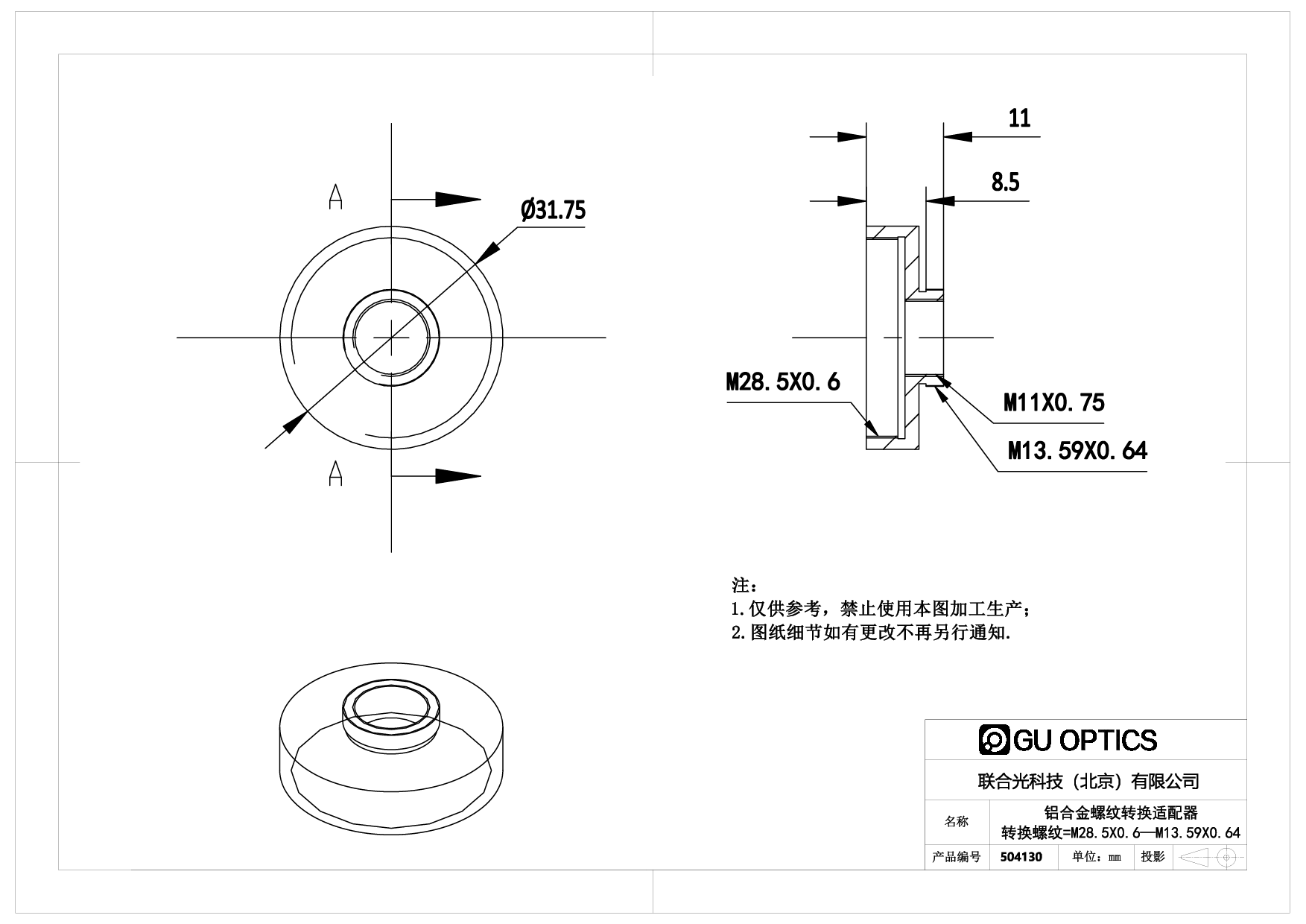 所有螺纹转换适配器都采用精密CNC数控加工,具有极高的尺寸精度以及良好的同心度和一致性,可使不同部件相互连接后的整体光路同轴。螺纹转换器还提供了和其他通用品牌的实验室光机部件之间的螺纹转换适配器(光桥系统和SM1、SM2、SM05匹配连接的螺纹转换接口等)。用户可以方便的将光桥系列产品应用到已经使用的光学架构系统中,从而节省从国内外采购同类产品的昂贵成本。