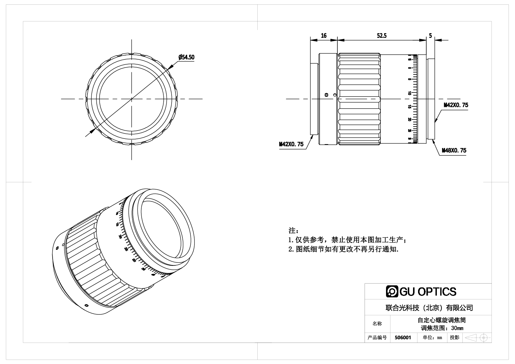 自定心螺旋调焦筒 Ø54.5mm Lmin=63.5mm