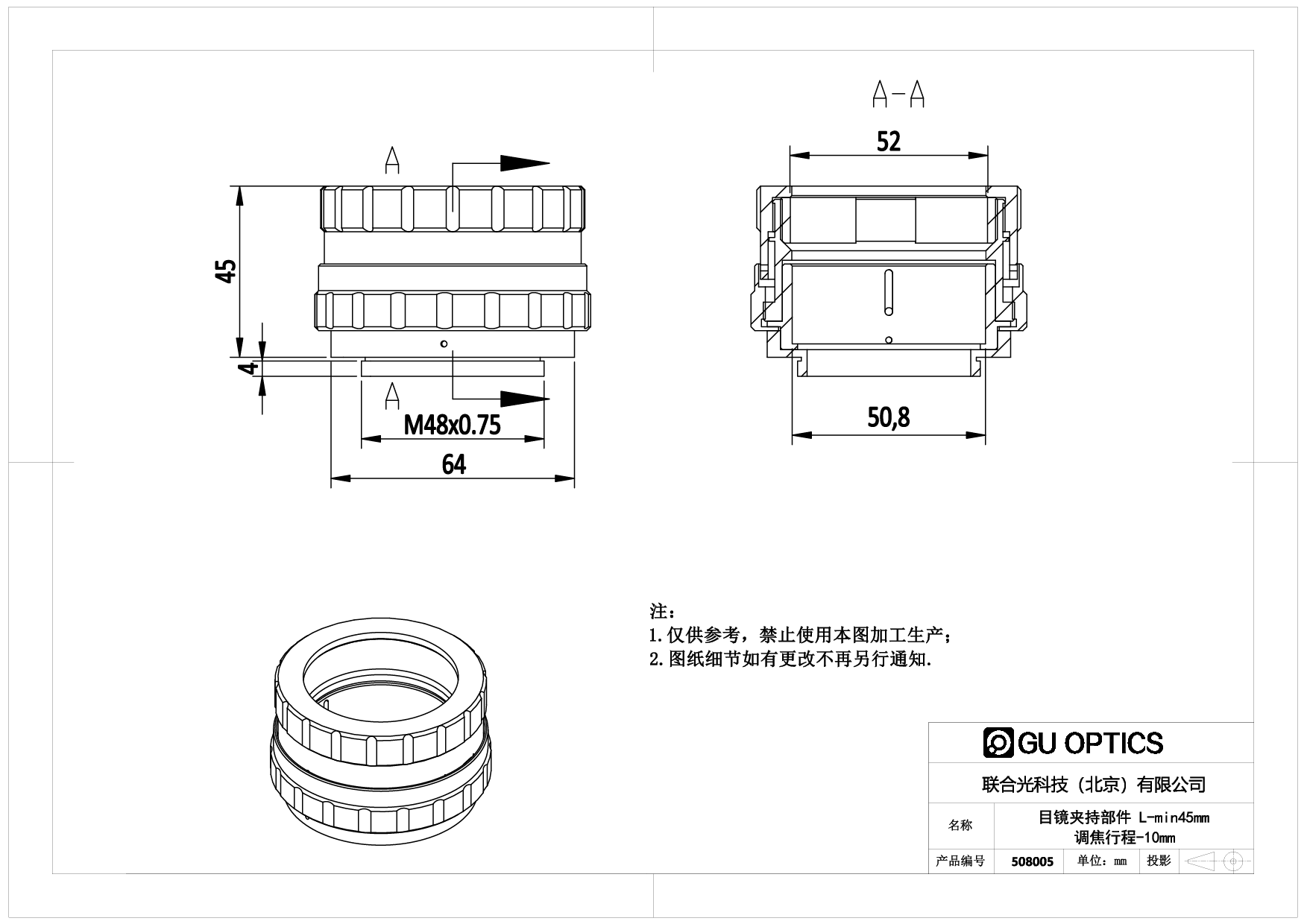 目镜夹持部件 L-min45mm 调焦行程-10mm