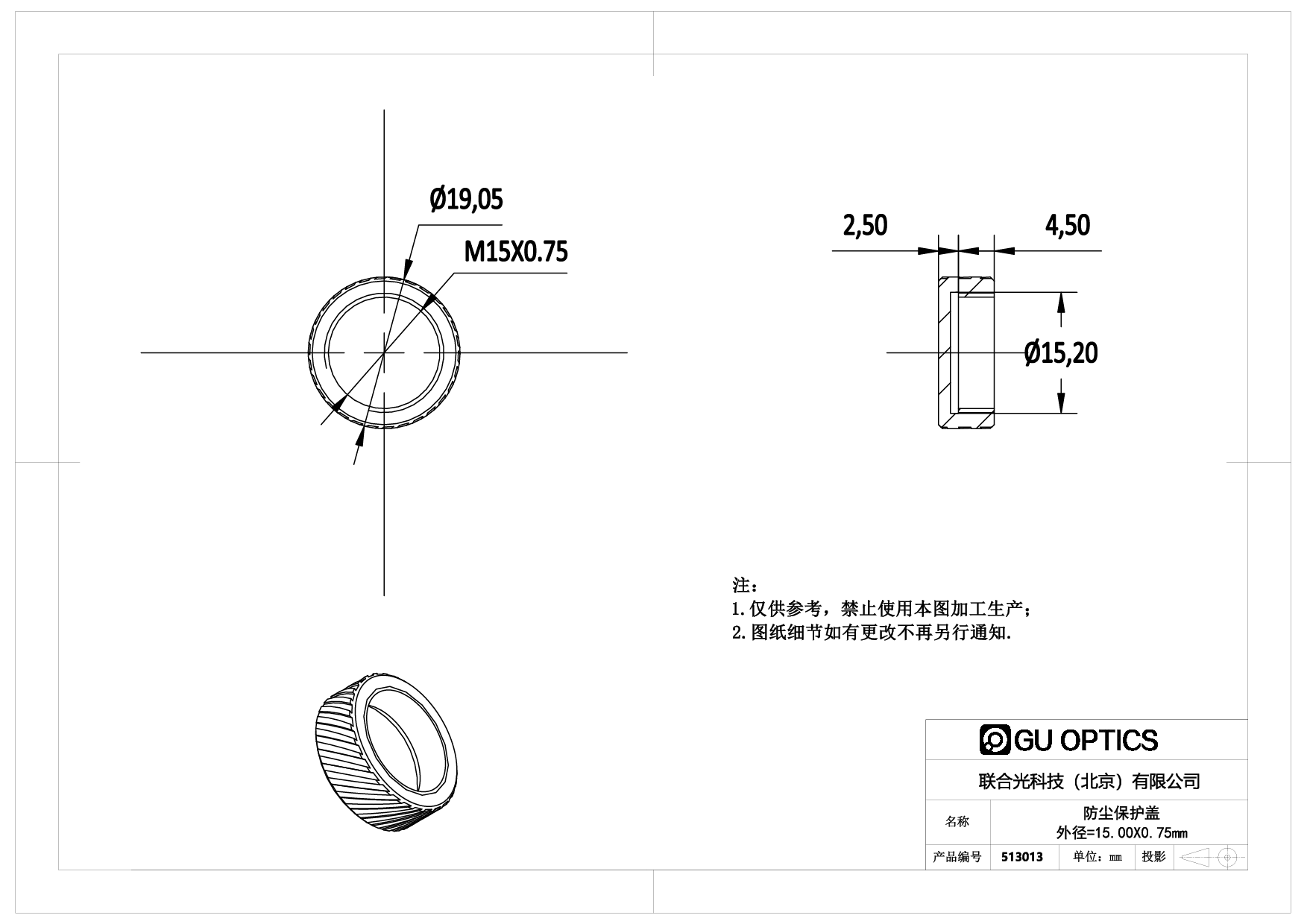 防尘保护盖(Dust Cover)可以用于所有对应螺纹结构的光桥系统产品,可用于保护贵重的光学元件及防止闲置的光学系统被灰尘或环境污染。联合光科可为您提供配套的光机元件,同时我们有大量的标准库现货供应。