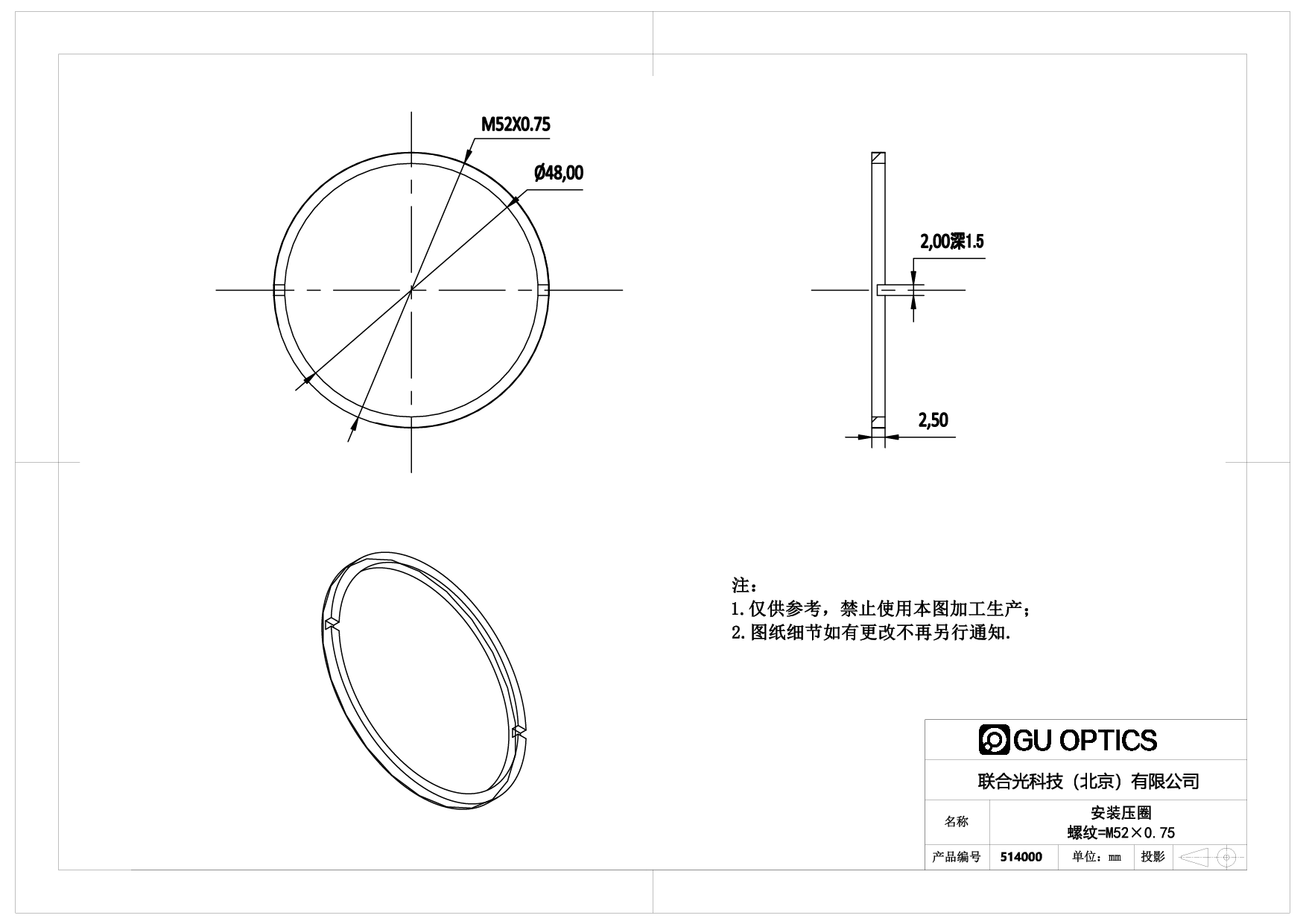安装压圈 螺纹规格-M52x0.75 内径-Ø48mm