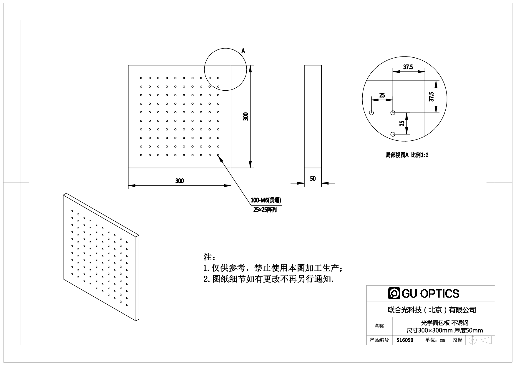 光学面包板 尺寸=300×300mm 厚度=50mm