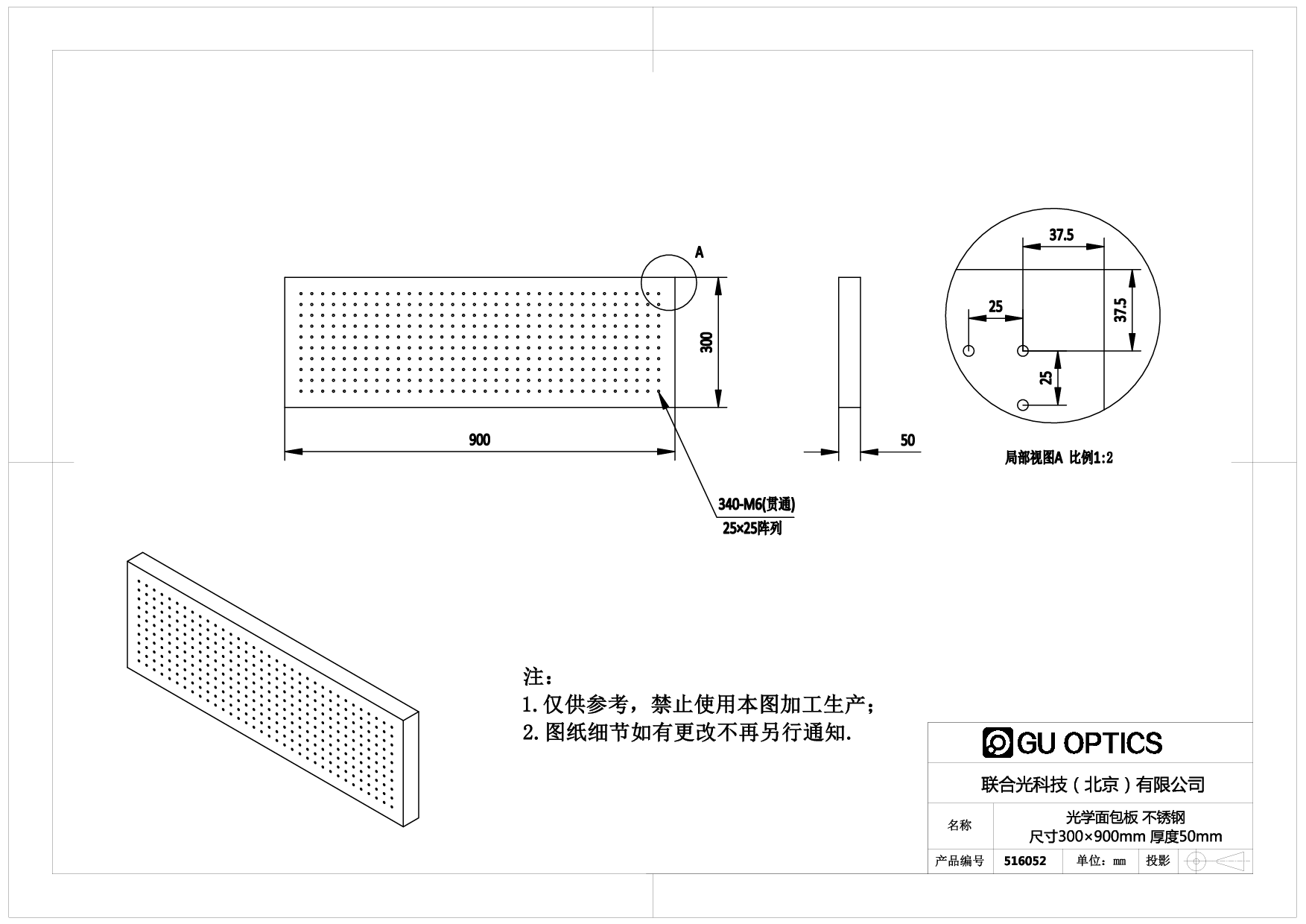 光学面包板 尺寸=300×900mm 厚度=50mm