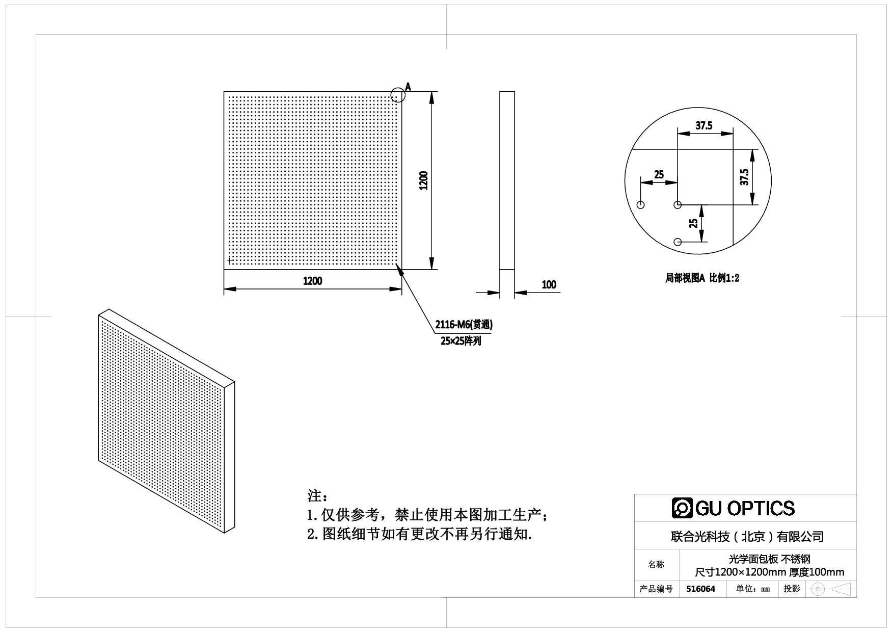 光学面包板 尺寸=1200×1200mm 厚度=100mm