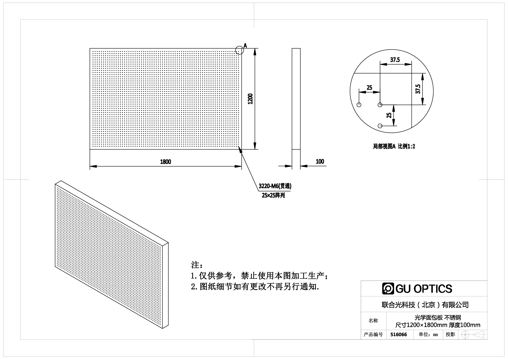 光学面包板 尺寸=1200×1800mm 厚度=100mm