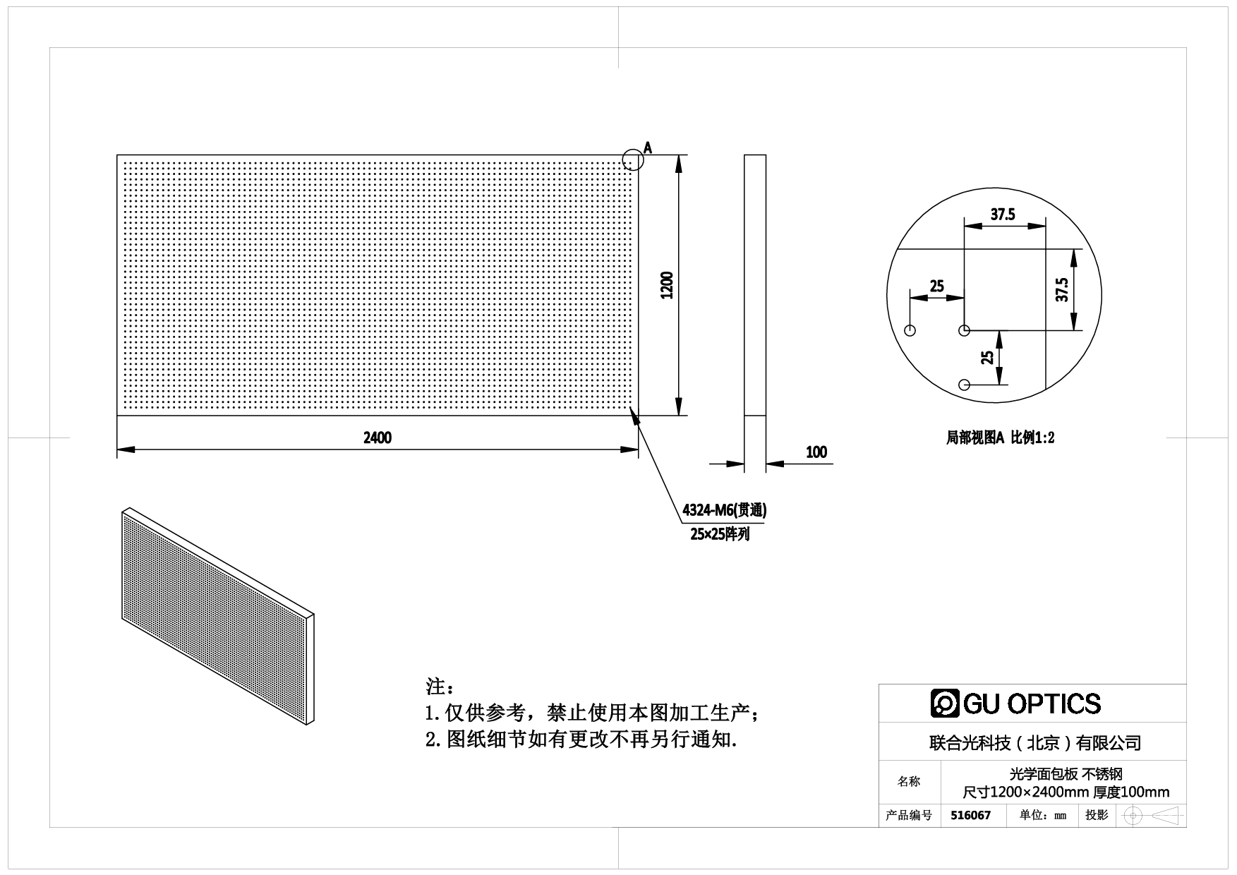光学面包板 尺寸=1200×2400mm 厚度=100mm