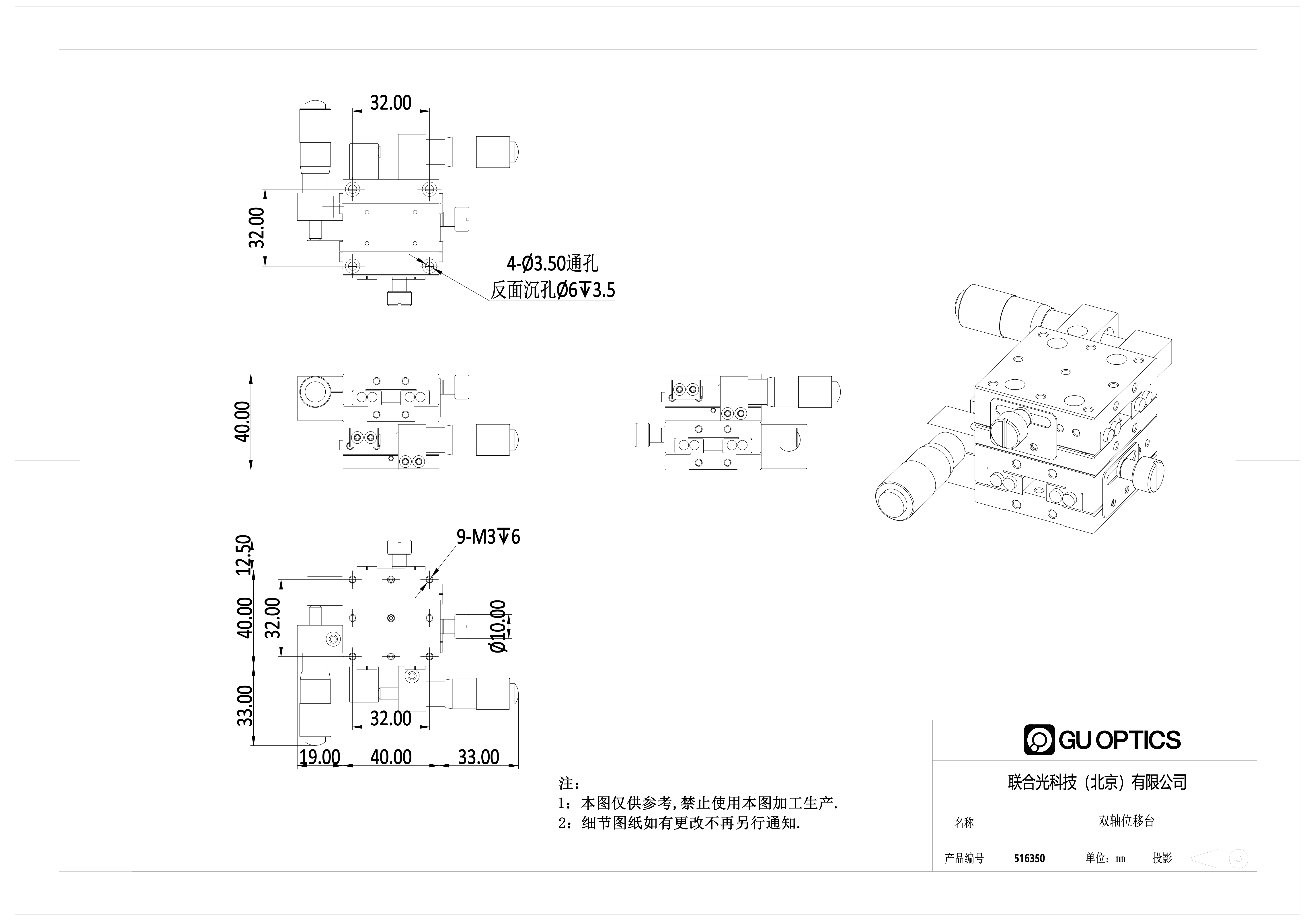 台面尺寸40x40mm 双轴精密位移台