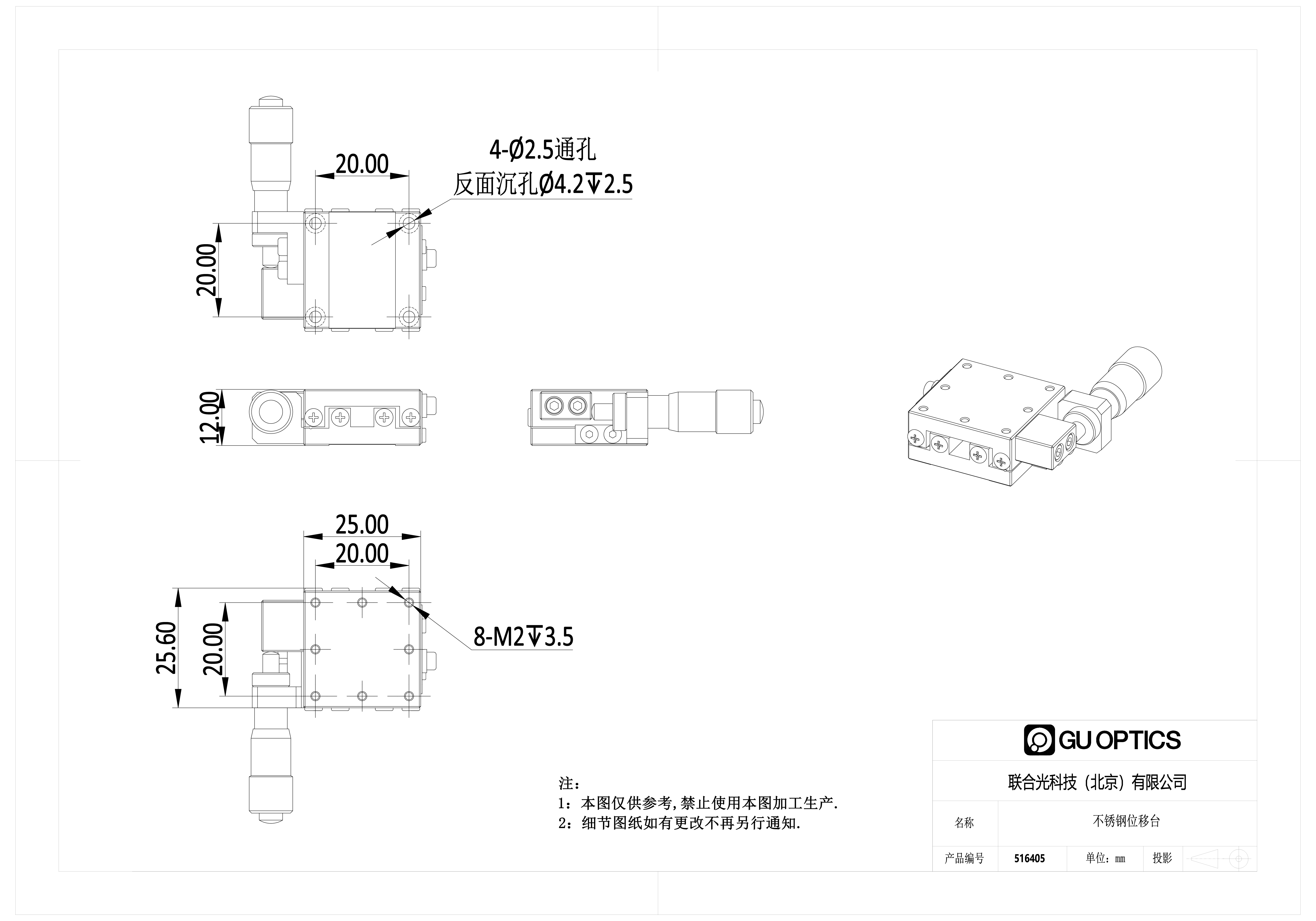 25x25mm 不锈钢位移台