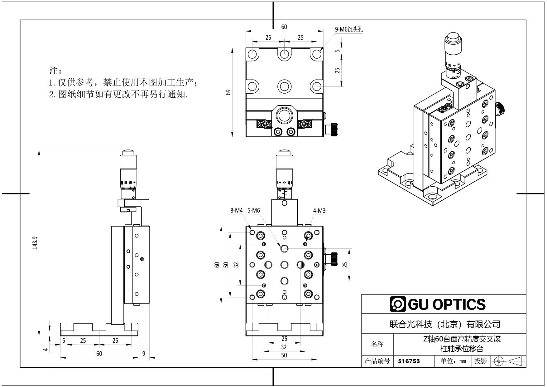60×60mm高精度交叉滚柱轴承垂直位移台