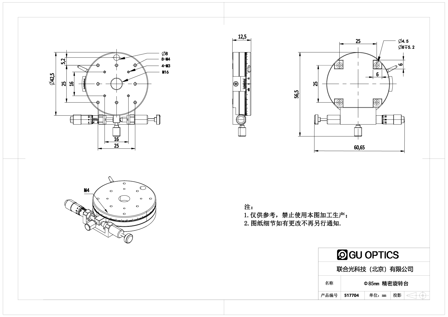 Φ85mm 精密旋转台