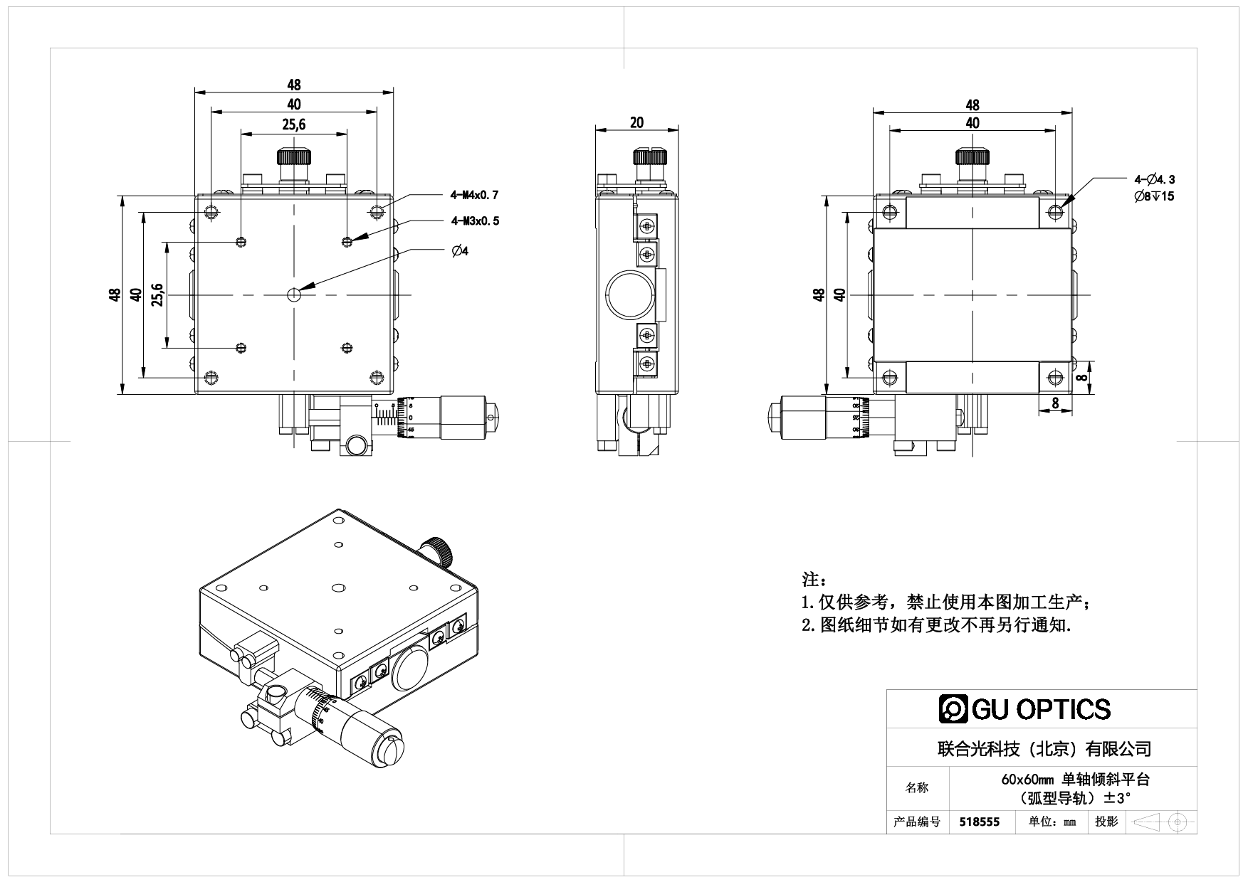 60x60mm 单轴倾斜平台(弧型导轨)±3°