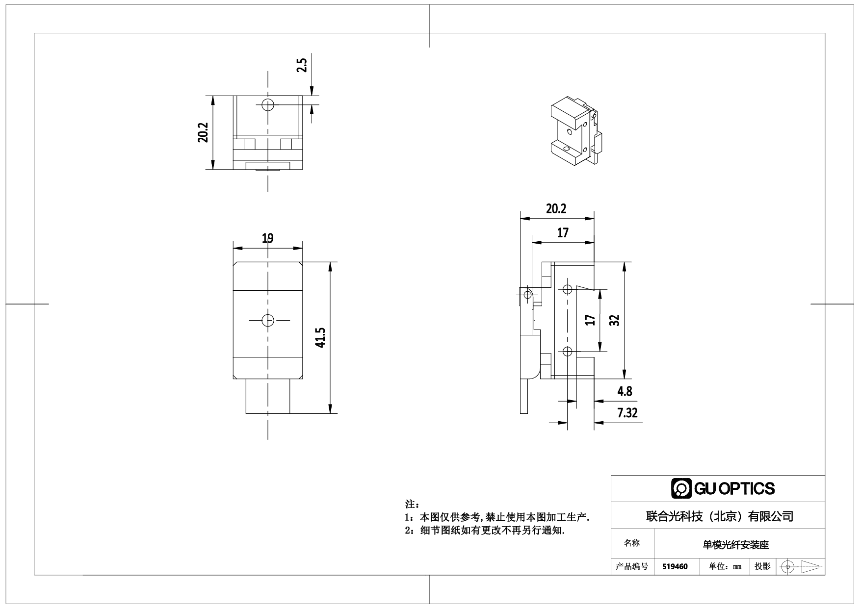 可固定单模光纤,采用磁铁设计,固定牢固且不伤光纤。底部燕尾座可直接固定在燕尾槽上,侧面带顶丝,方便拆卸。
