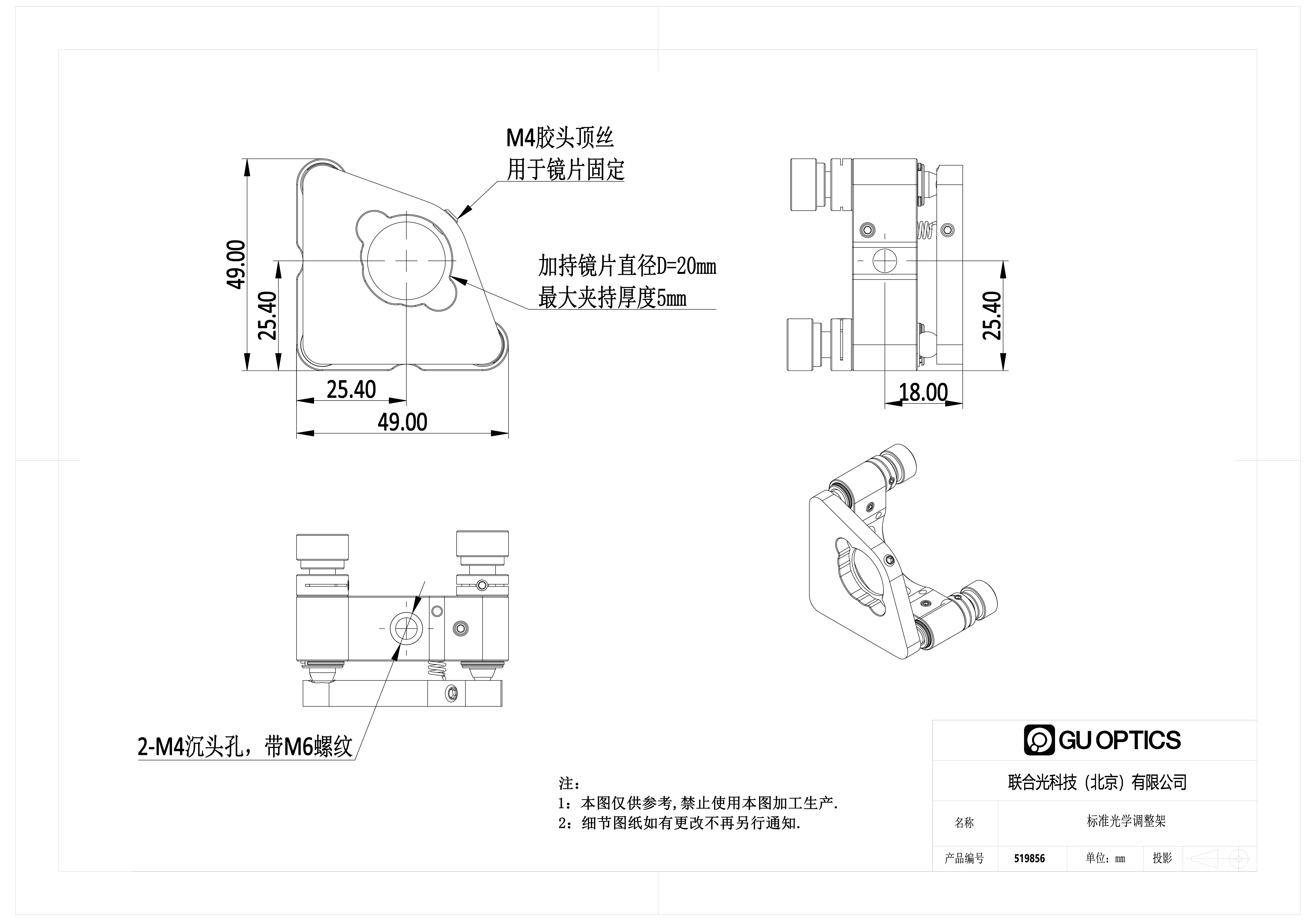2. 在购买夹持光学元件镜架时,请确定元件的尺寸及厚度,确保匹配。