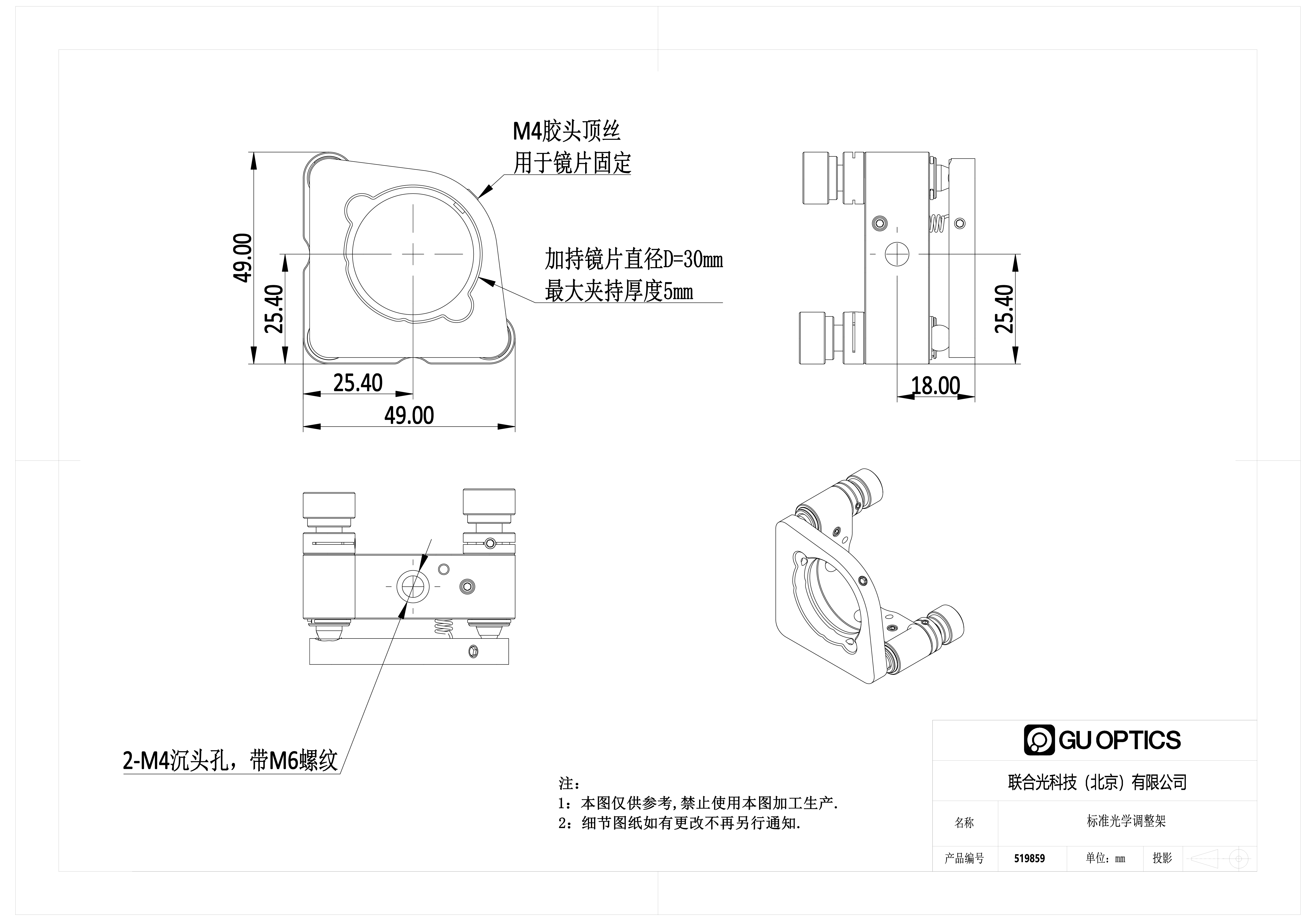 2. 在购买夹持光学元件镜架时,请确定元件的尺寸及厚度,确保匹配。