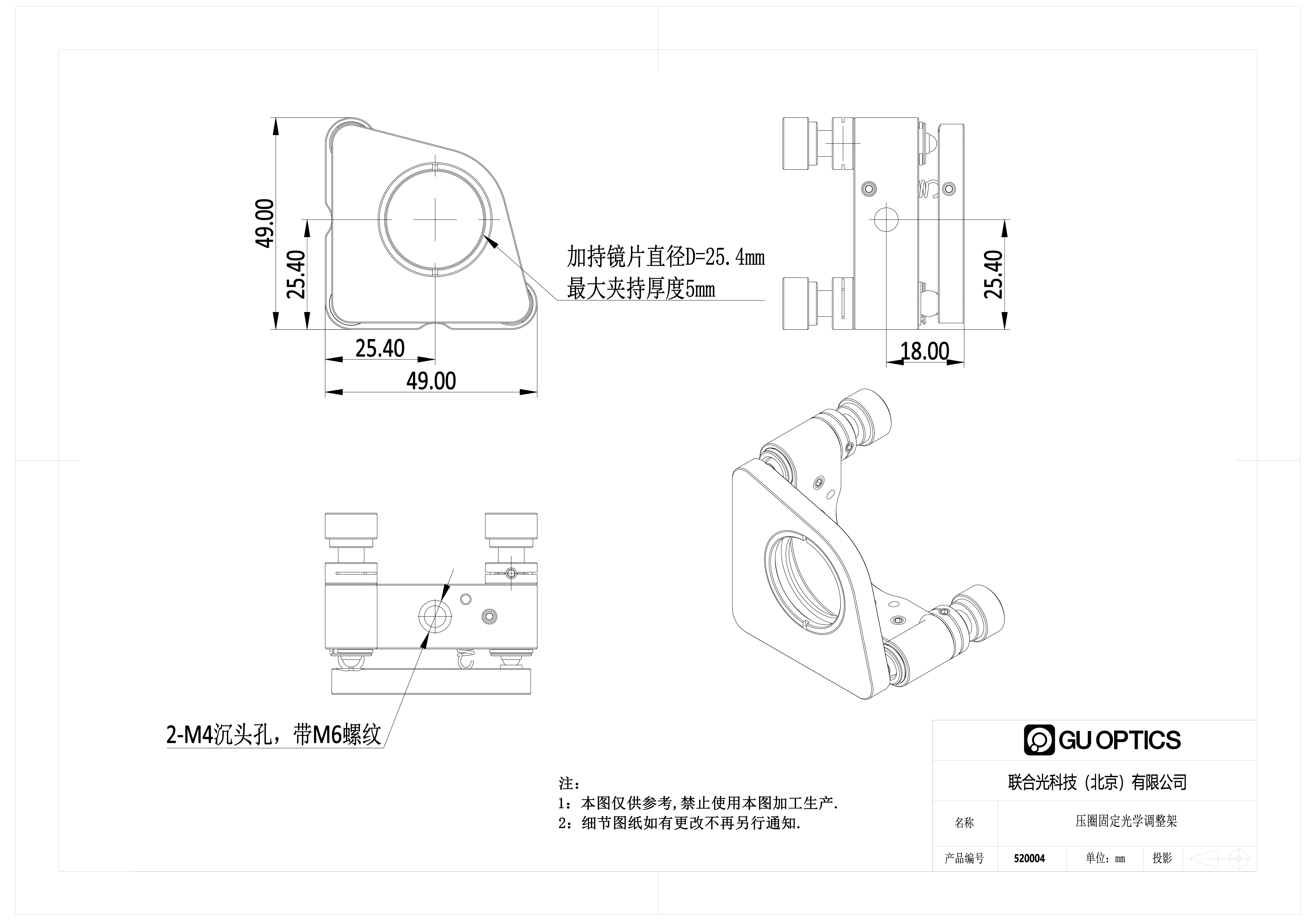 3. 镜座背面两侧各有一M4沉头孔,方便固定;