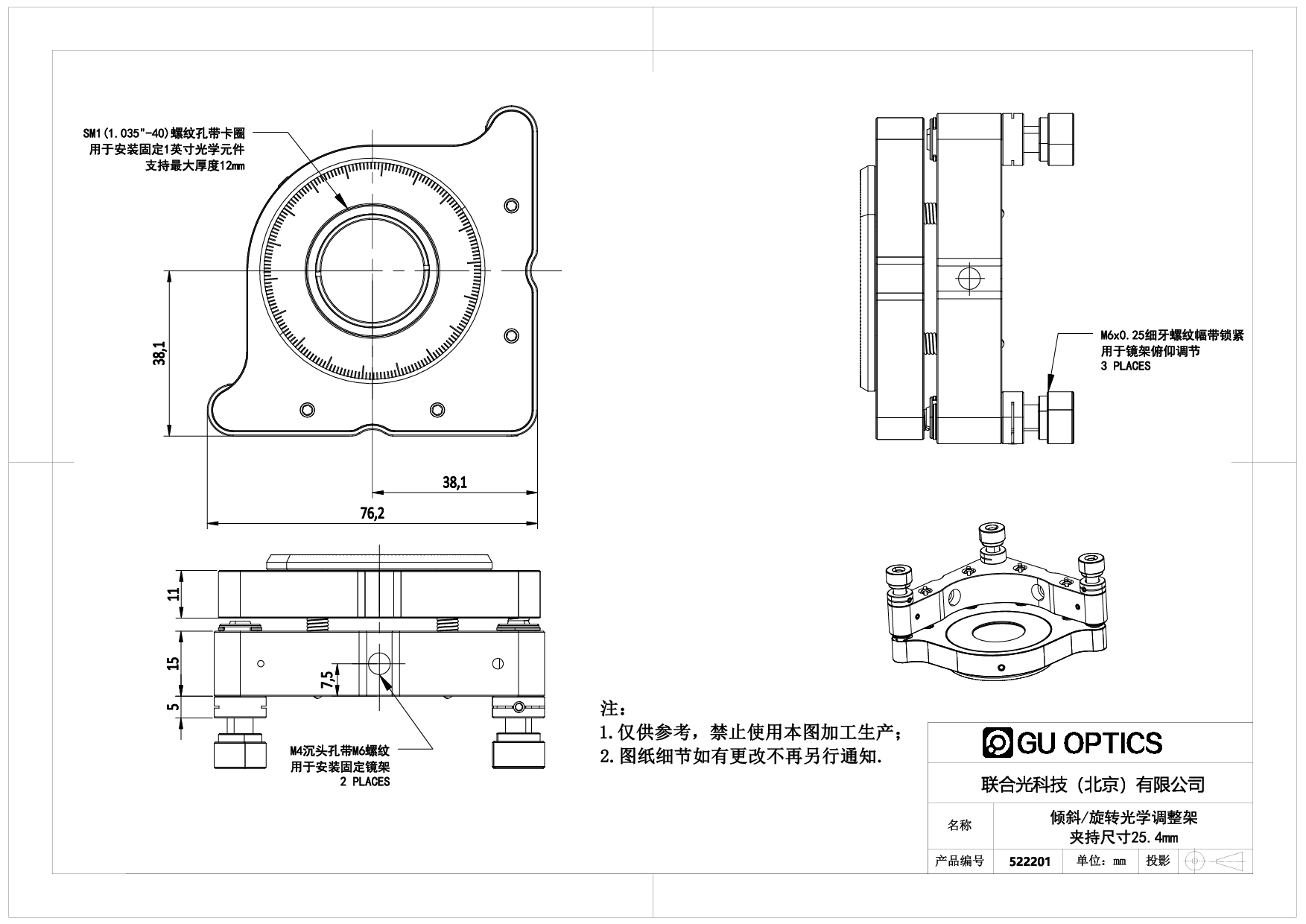3. 适用于直径25.4mm的,最大厚度7mm的光学组件;