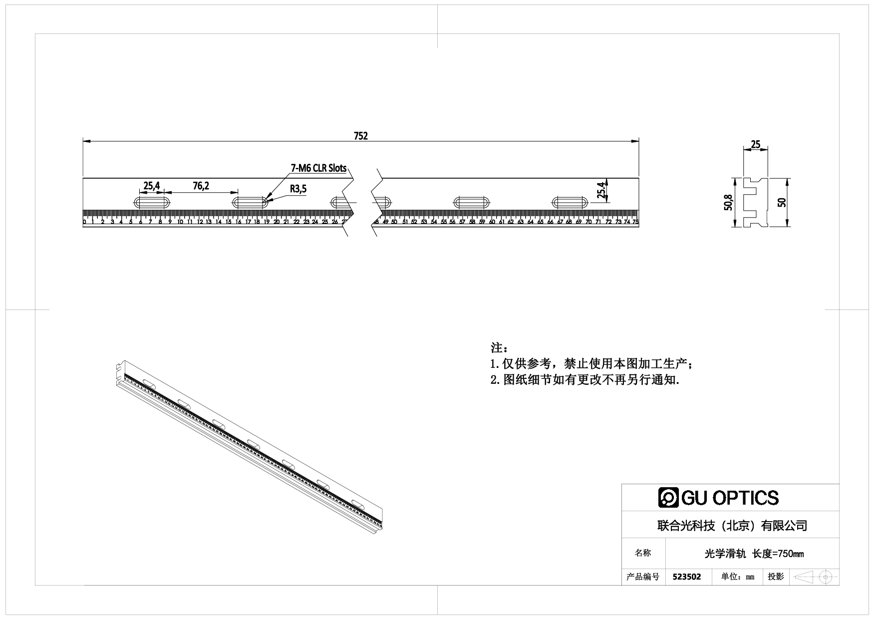 光学滑轨 长度750mm 滑轨宽度50.8mm
