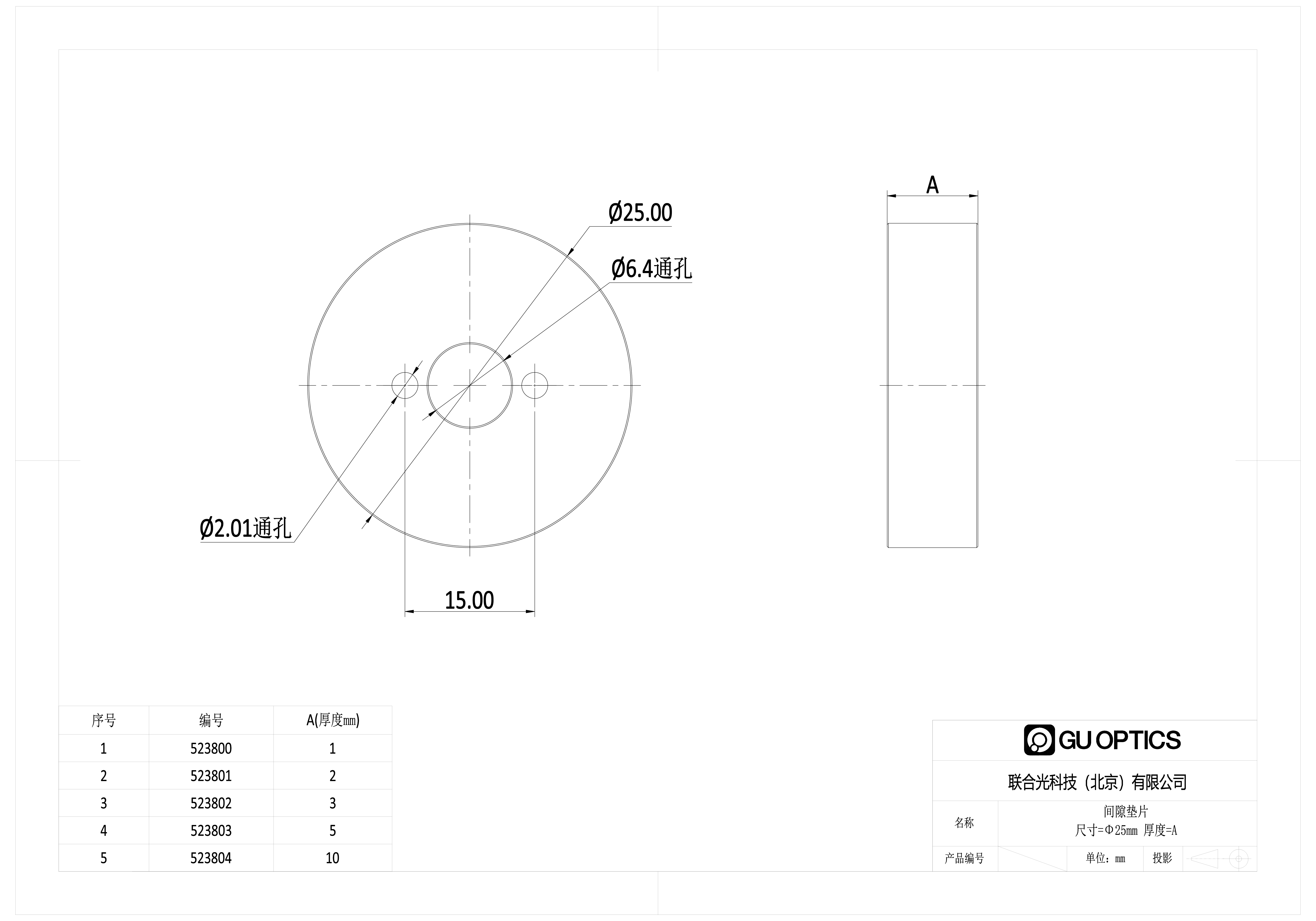 间隙垫片 尺寸=Φ25mm 厚度=5mm