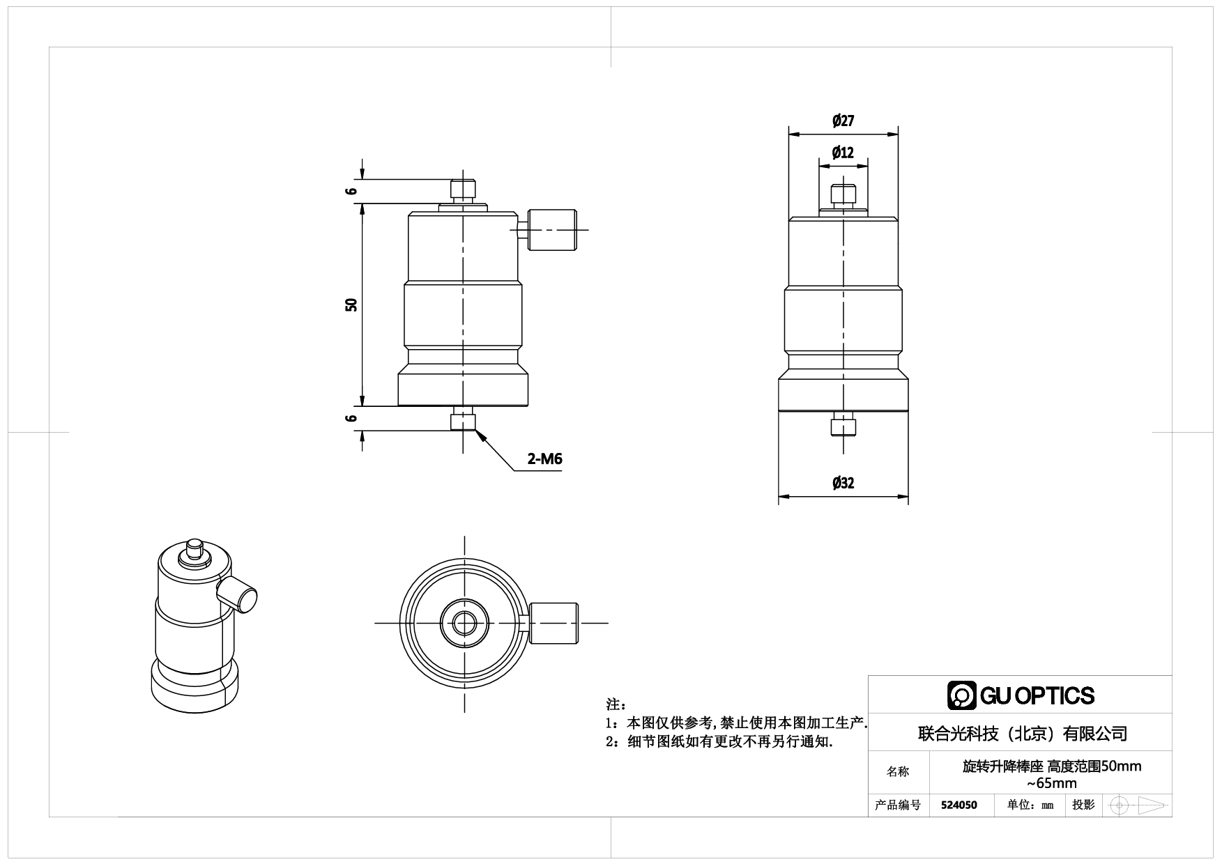 旋转升降棒座 高度范围50mm ~65mm