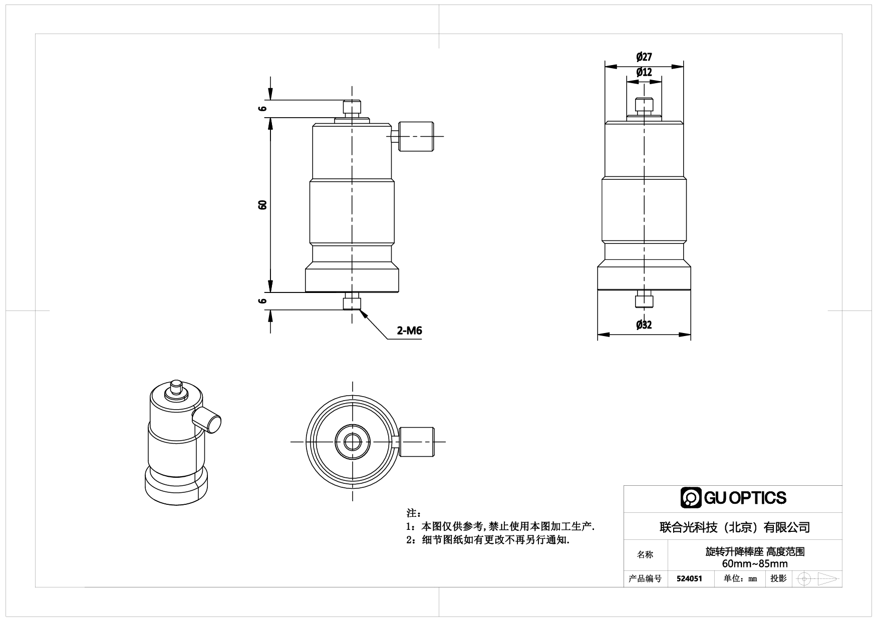 联合光科的旋转声响棒座自带支撑棒,简单便捷,用于垂直微调,多种高度调节范围可选:50mm-65mm、60mm-85mm、75mm-115mm、110mm-180mm。带有缩紧手轮用来锁定调节好的高度,也可以支撑棒系列配合使用,增加整体高度。