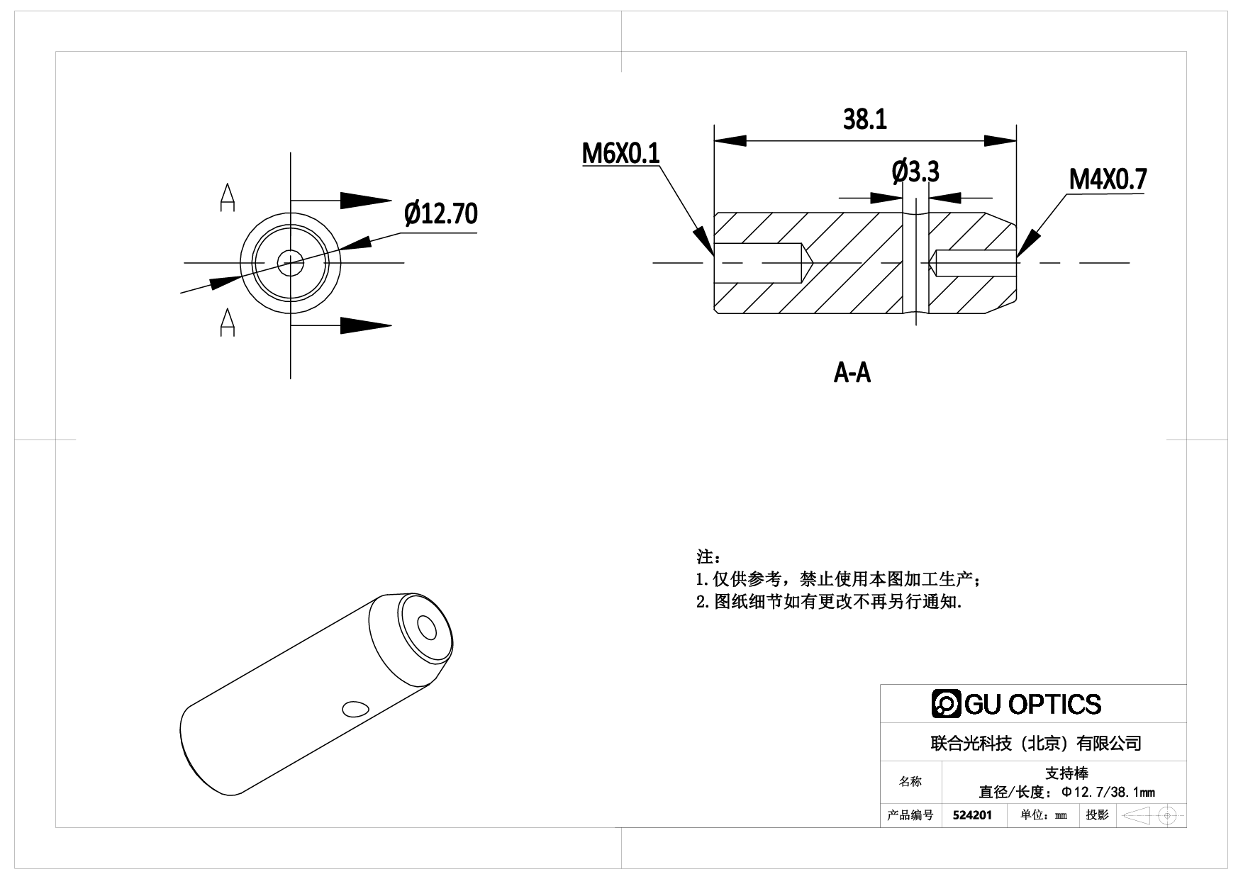 支撑棒 长度=38.1mm 直径=Φ12.7mm