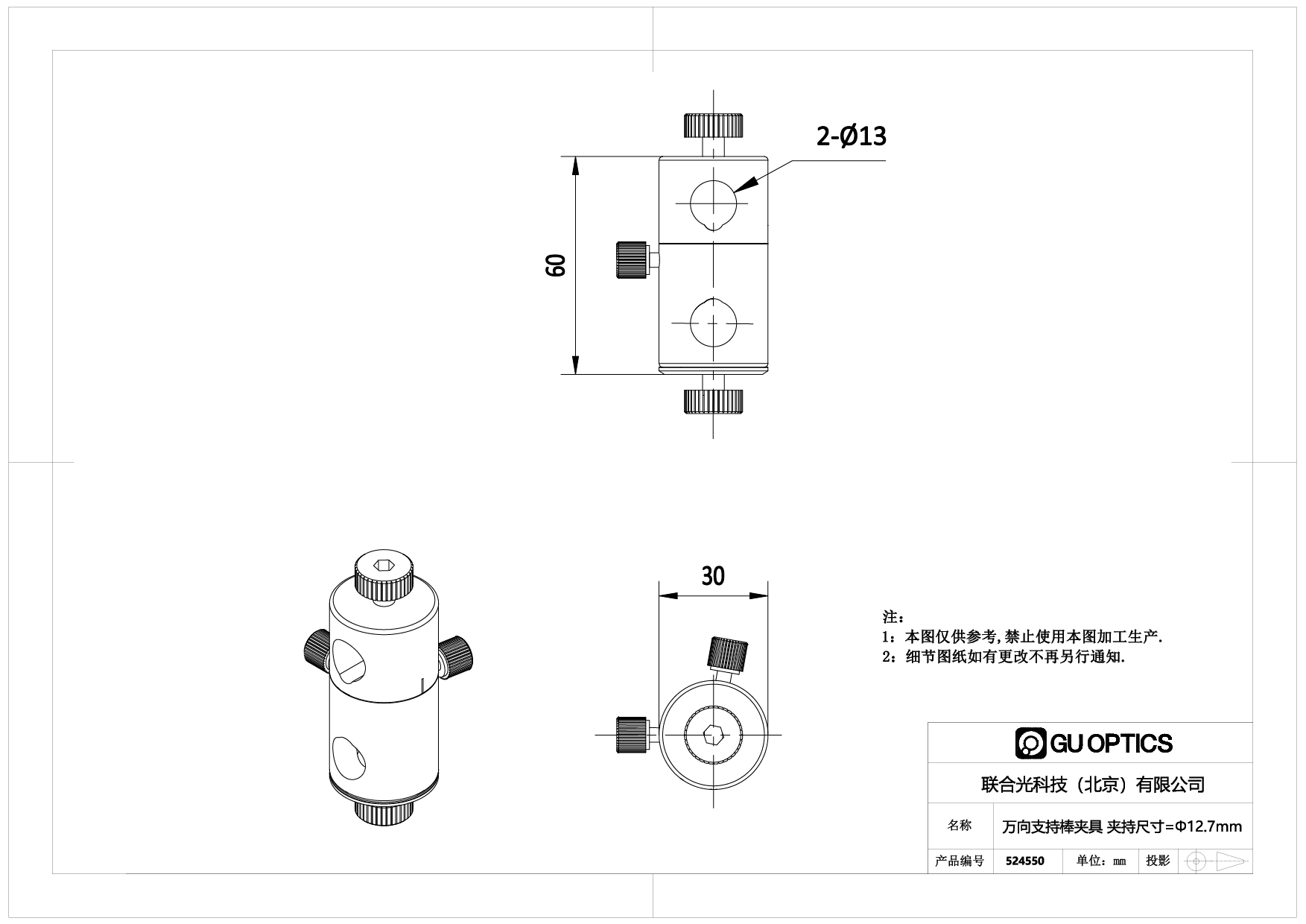 万向支持棒夹具 夹持尺寸=Φ12.7mm 同轴转动