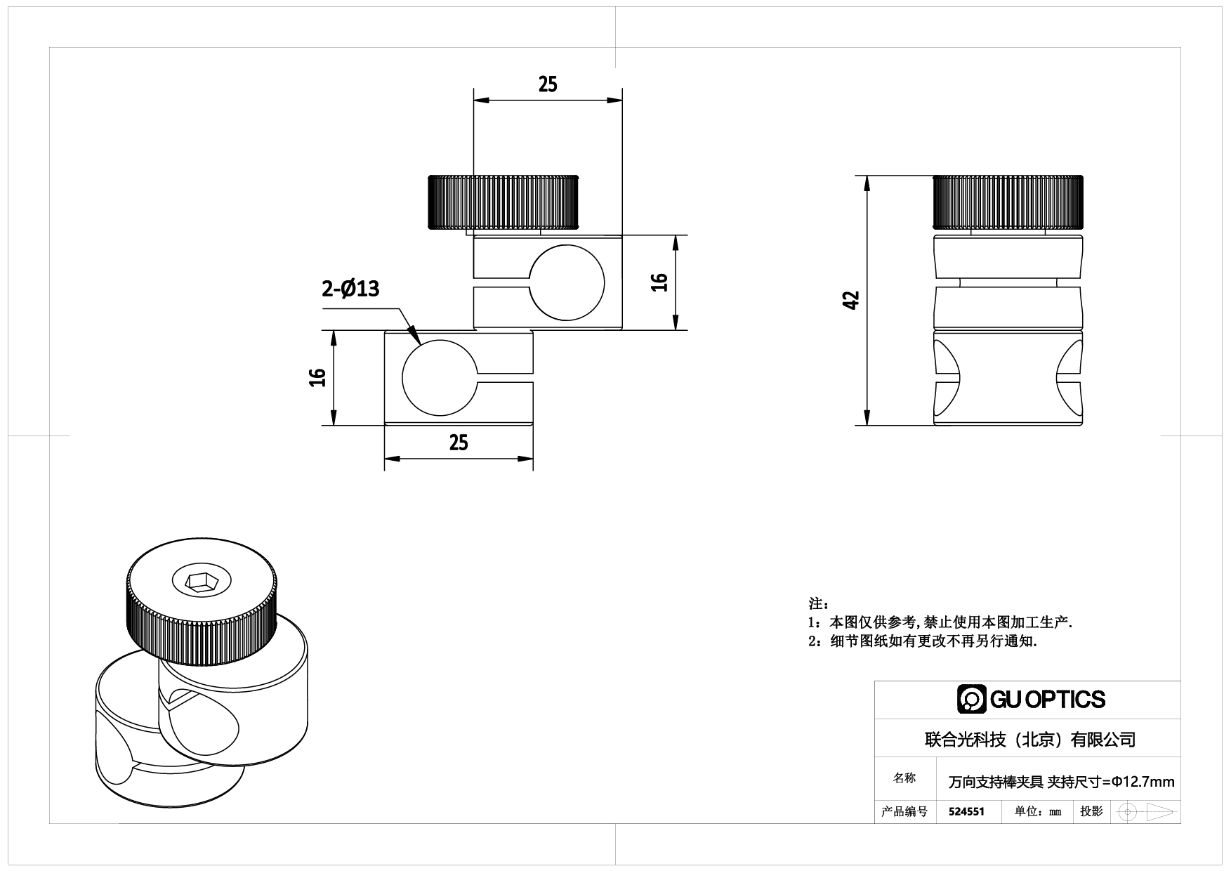 联合光科的万向支撑棒夹具用于固定转接各种支撑棒,进行相对角度转换,搭建复杂转接光路。可以使两支支撑棒360°旋转至任何角度。联合光科可为您提供配套的光机元件,同时我们有大量的标准库现货供应。