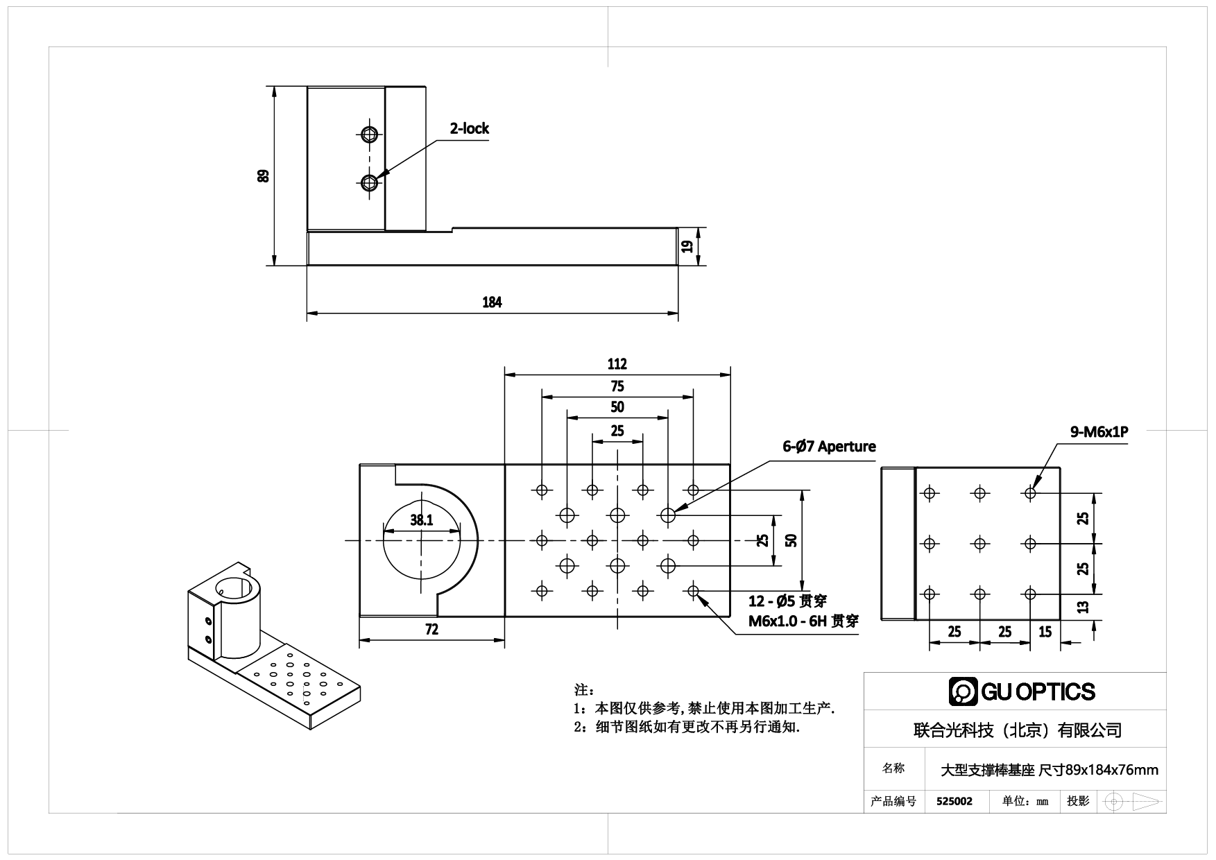 与大型支撑座配合使用,可便捷的固定到光学平台上