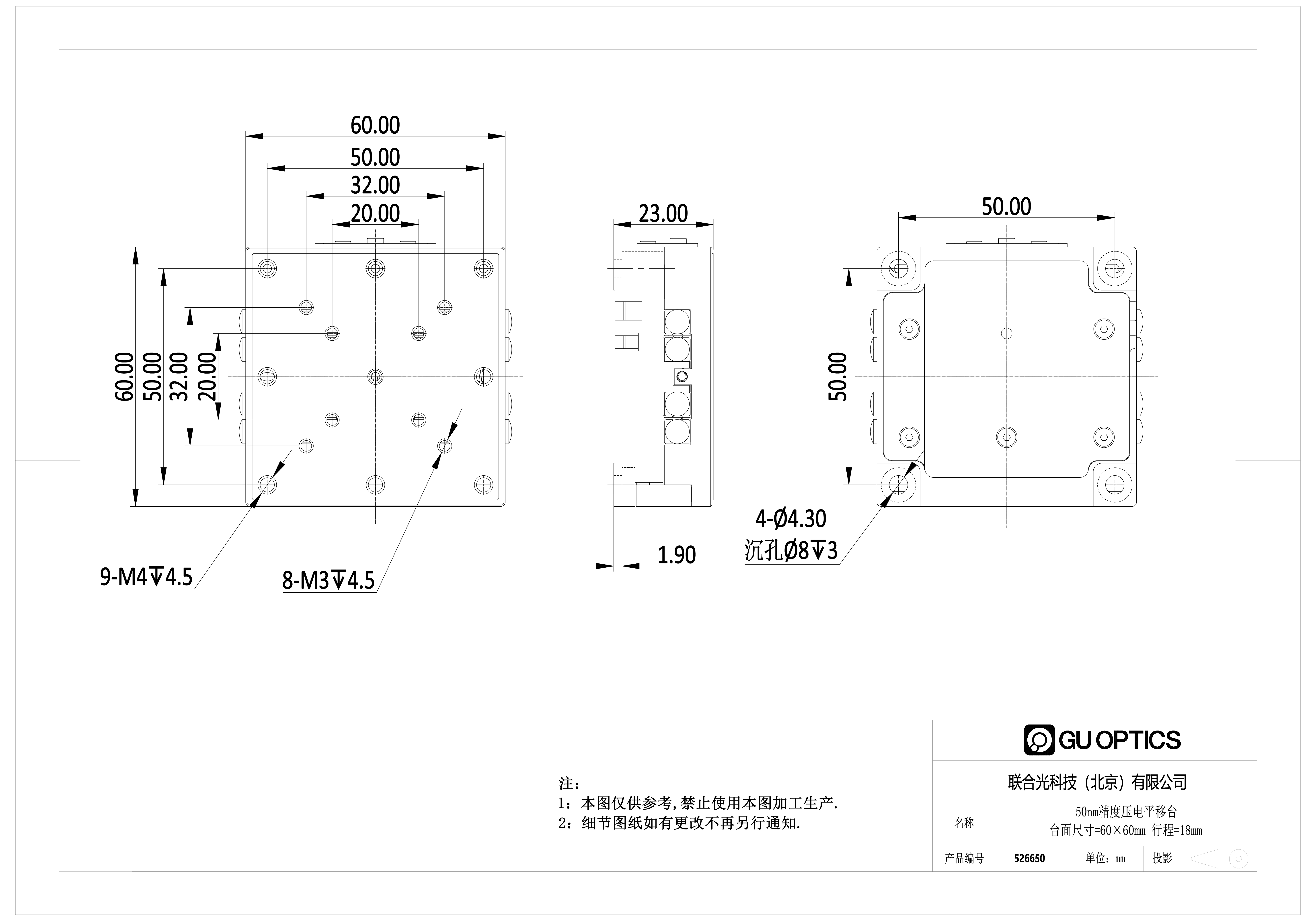 50nm步进压电平移台 台面尺寸=60×60mm 行程=18mm 包含控制器