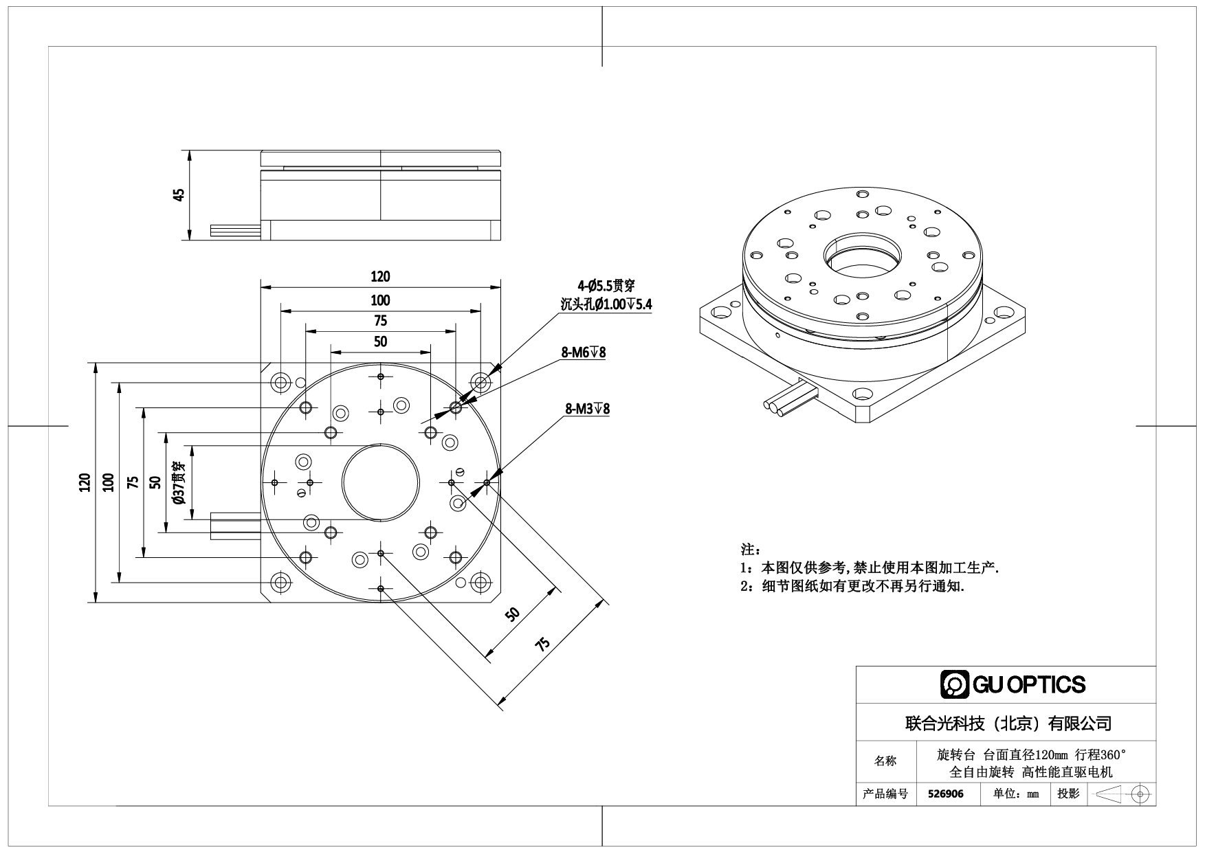 旋转台 台面直径120mm 行程360°全自由旋转 高性能直驱电机