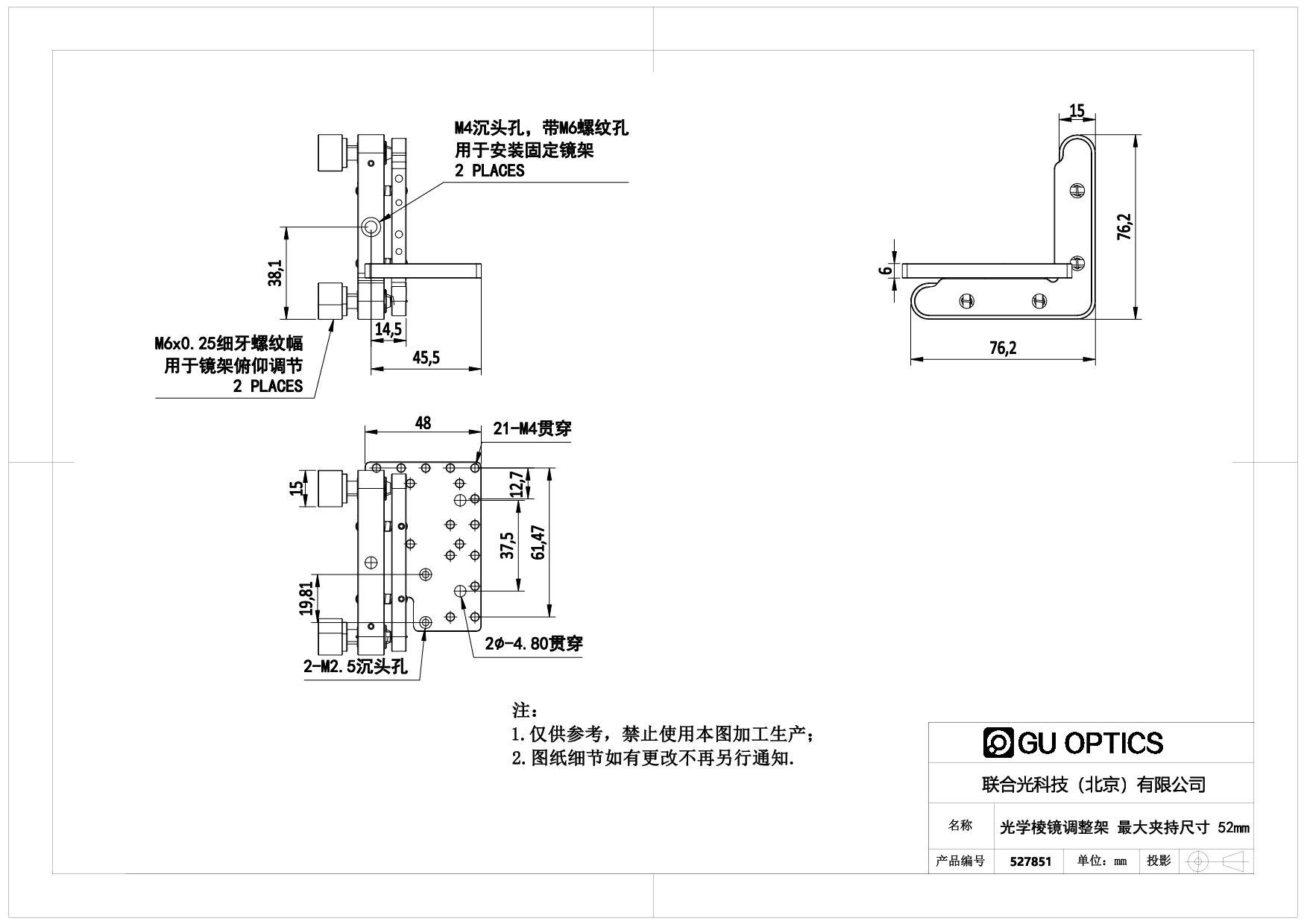 2. 在购买夹持光学元件镜架时,请确定元件的尺寸及厚度,确保匹配。