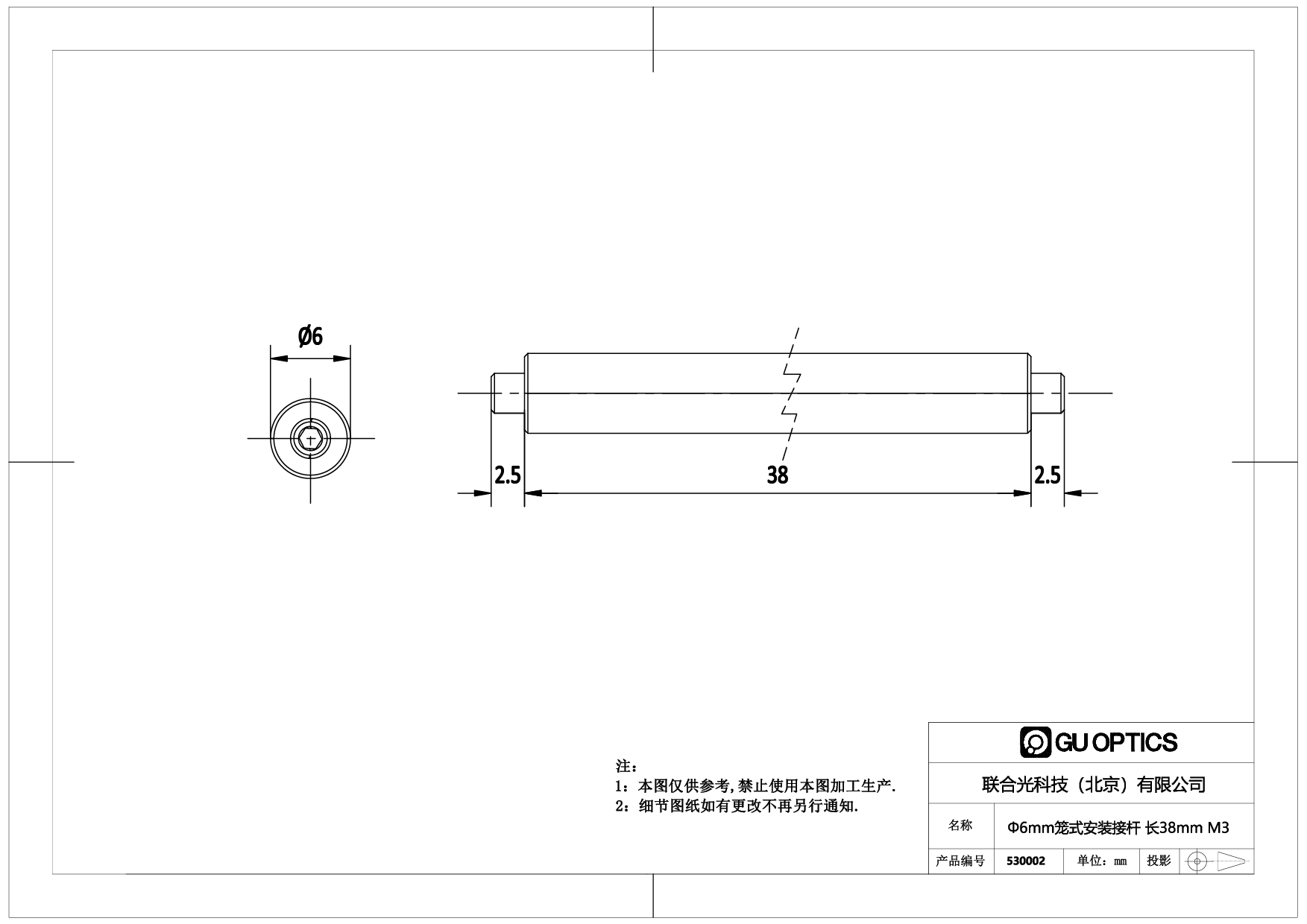联合光科系统安装接杆材质为不锈钢,直径为Φ6mm,兼容30mm和60mm的笼式系统,12.5mm-300mm多种长度规格可选。顶端带M3凹端紧定螺钉,可拆卸螺丝,多根接杆串接可拓展长度。
