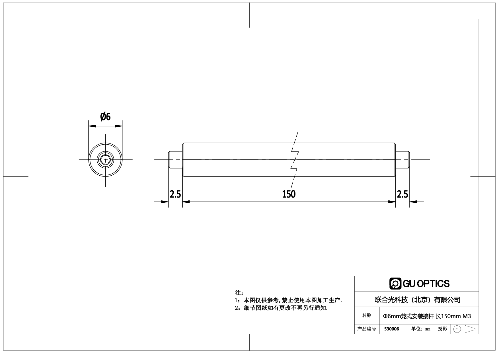 联合光科系统安装接杆材质为不锈钢,直径为Φ6mm,兼容30mm和60mm的笼式系统,12.5mm-300mm多种长度规格可选。顶端带M3凹端紧定螺钉,可拆卸螺丝,多根接杆串接可拓展长度。