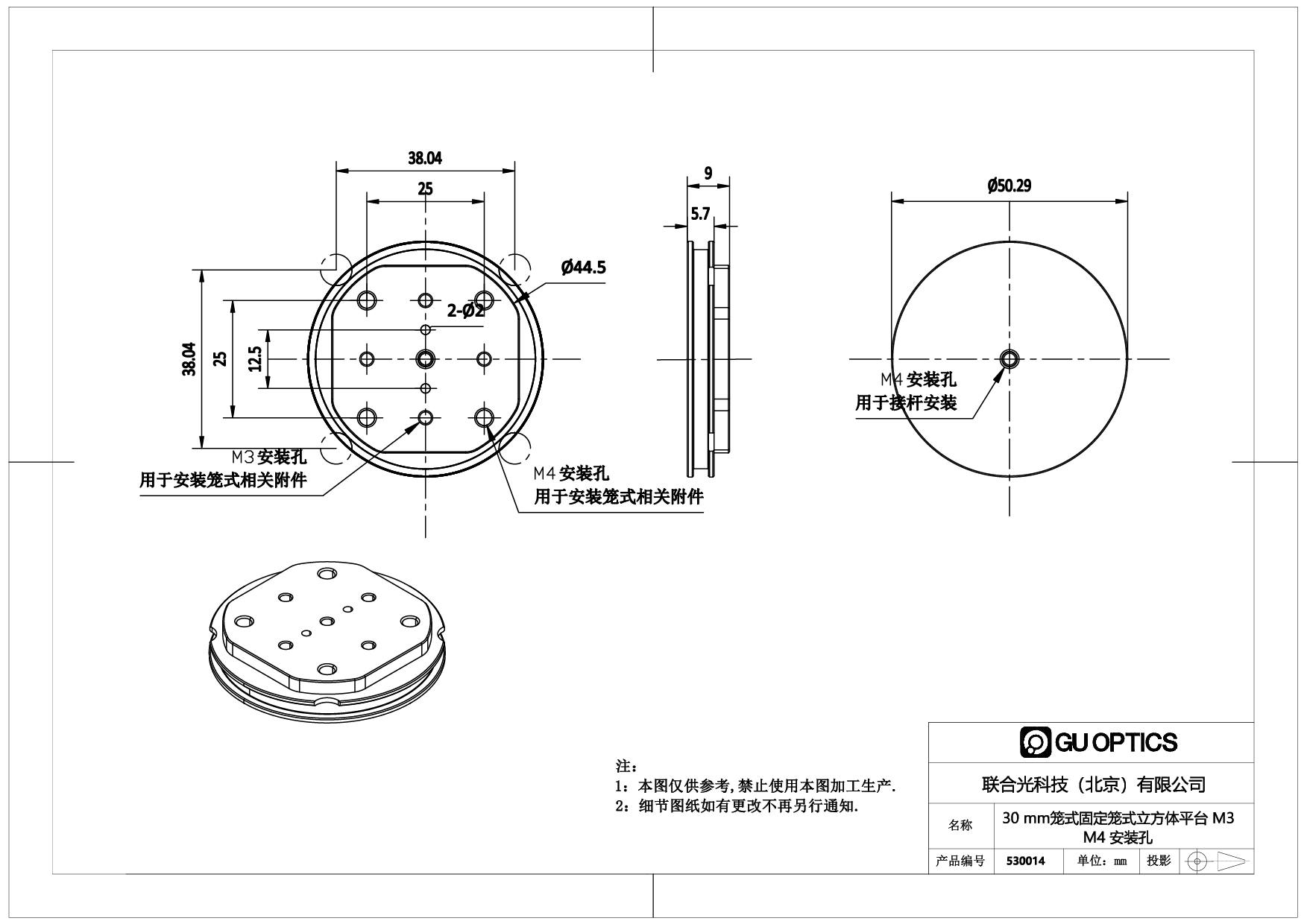 30 mm笼式固定笼式立方体平台 M3 M4 安装孔