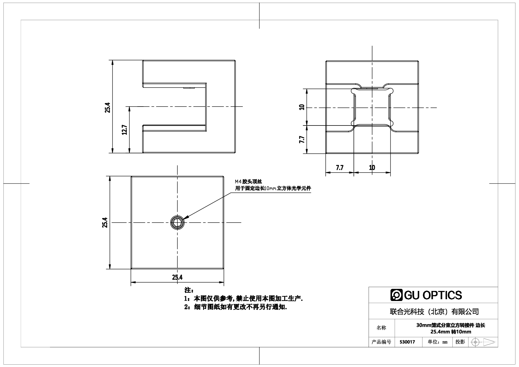 30mm笼式分束立方转接件 边长25.4mm 转10mm