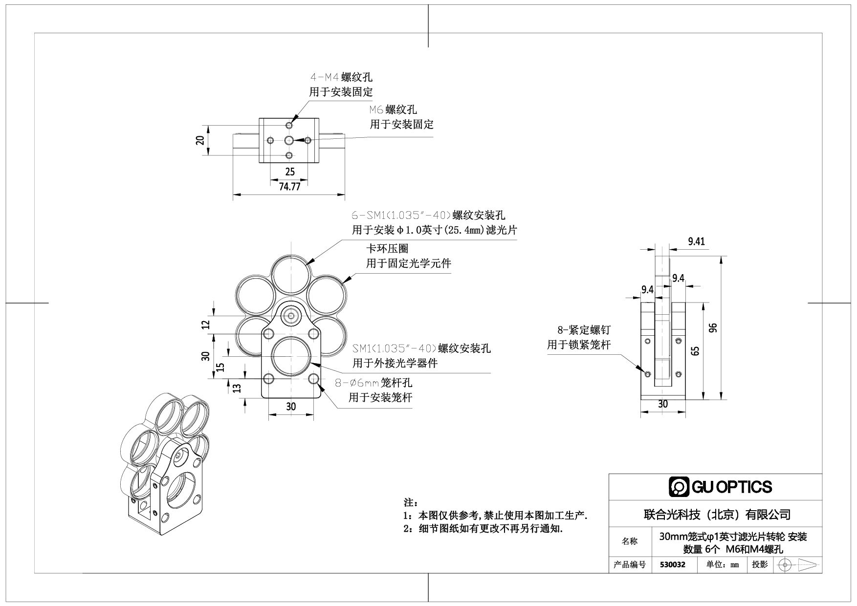30mm笼式φ1英寸滤光片转轮 安装数量 6个 M6和M4螺孔