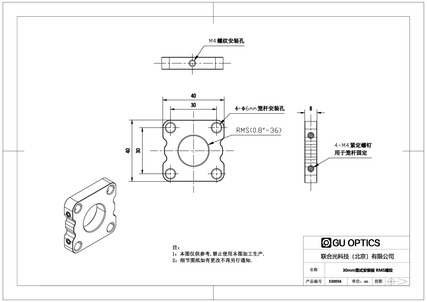 30mm笼式安装板 RMS螺纹