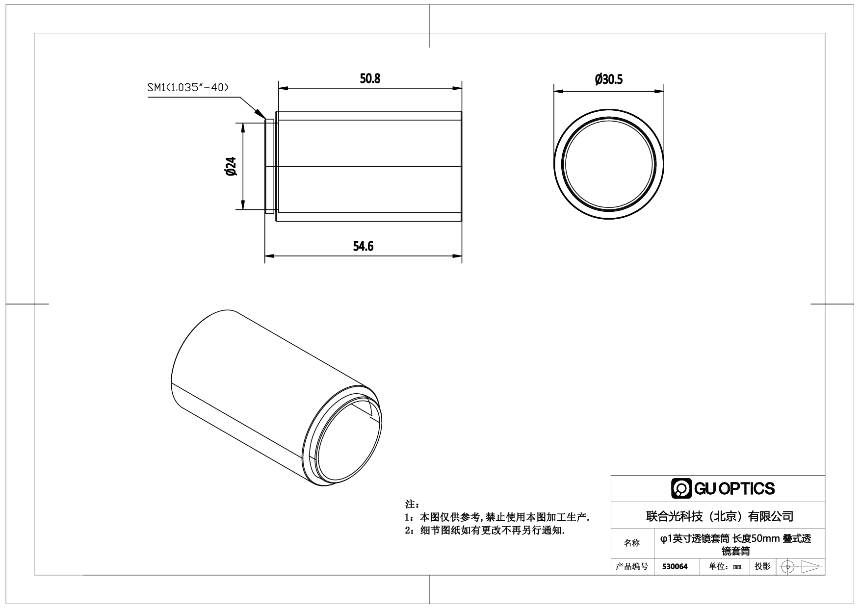 φ1英寸透镜套筒 长度50mm 叠式透镜套筒