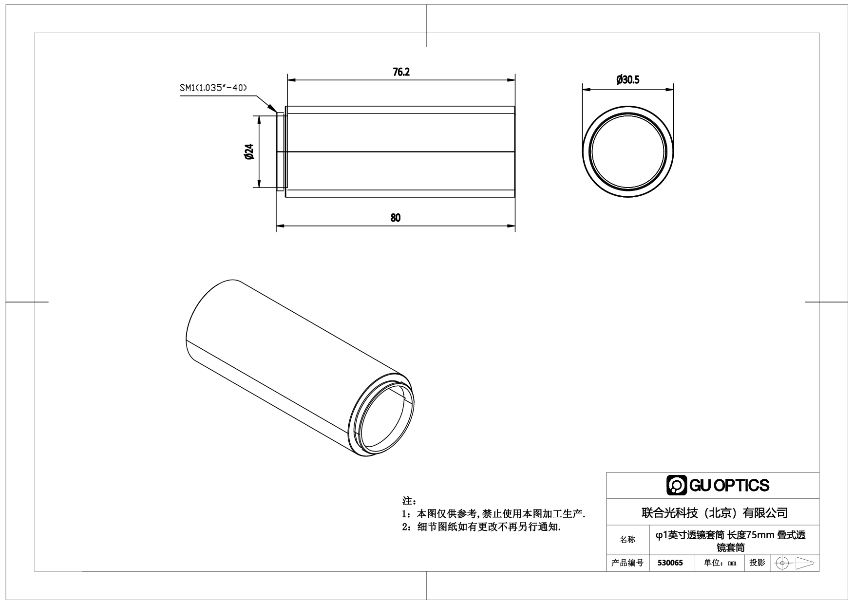 - 备注 叠式透镜套筒