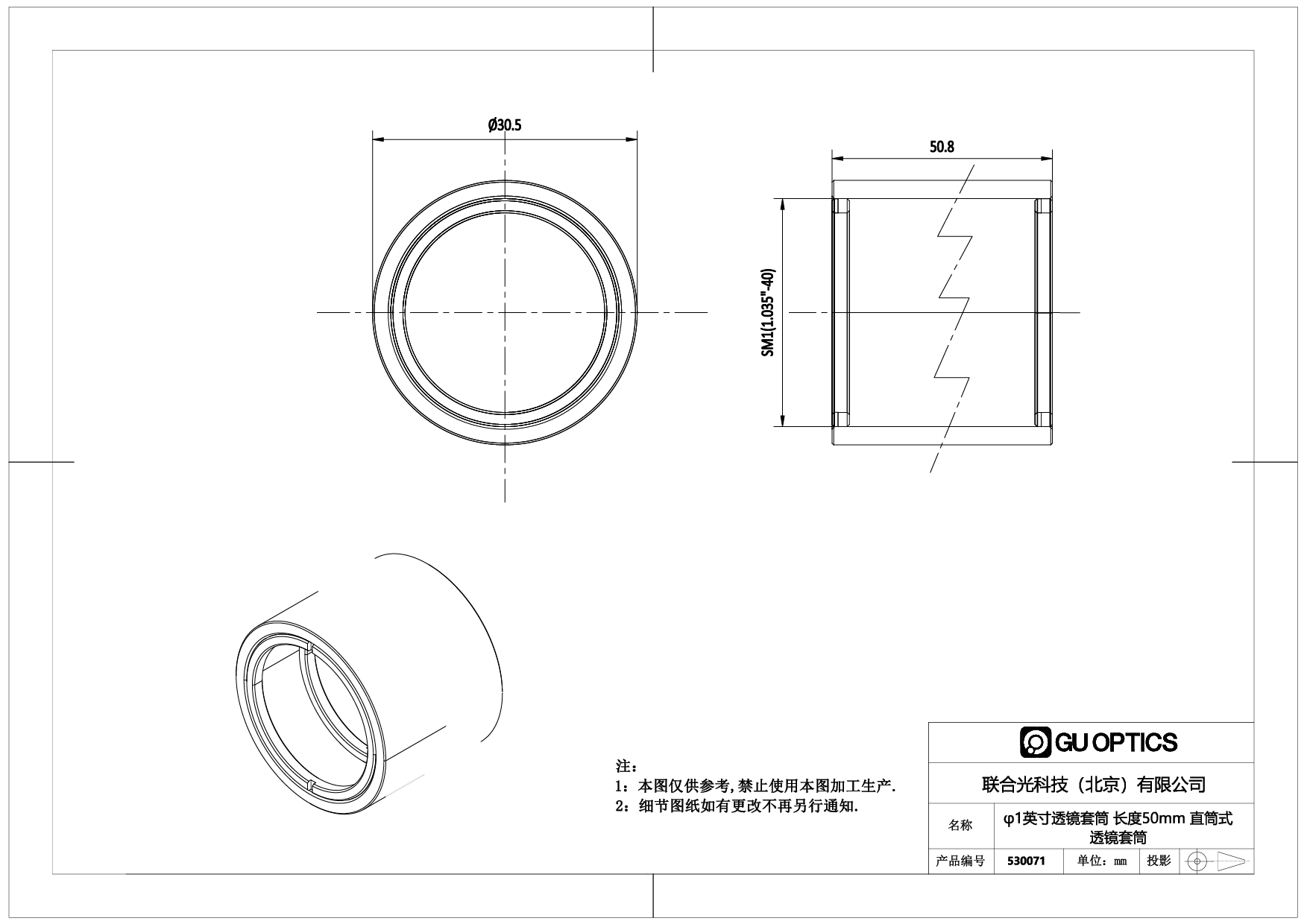 φ1英寸透镜套筒 长度50mm 直筒式透镜套筒