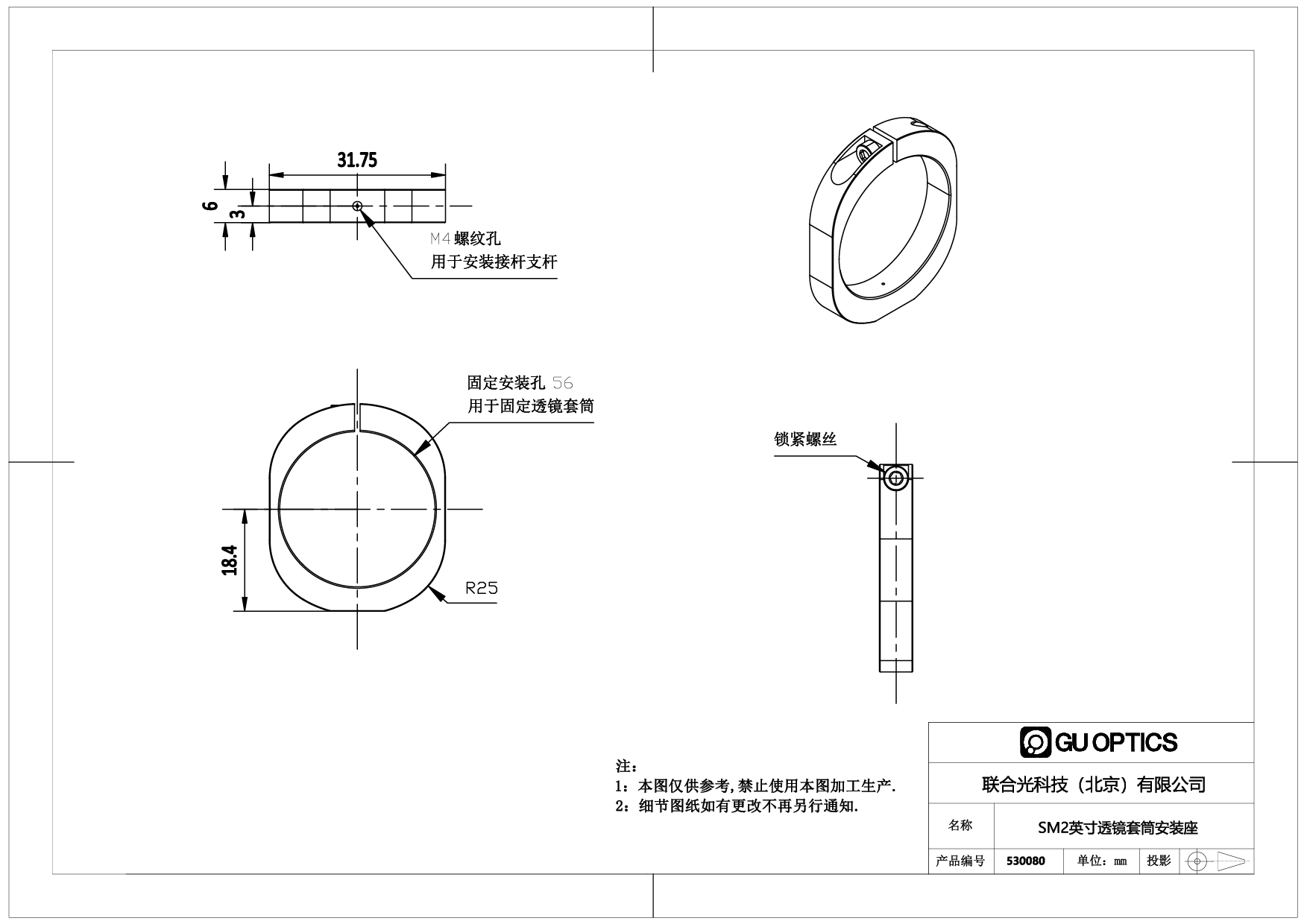 - 备注 用于SM2透镜套筒